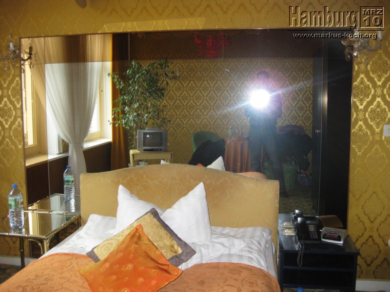 Per ICE ging es von AB über WÜ nach HH – schnell und vor allem günstig (29 € pP) haben wir schon mittags ins Hotel eingecheckt. Das Hotel Village war sehr interessant, da es früher ein Edel-Bordell war. Dies sah man auch an unserem Zimmer – eine komplette Spiegelwand und über dem Bett auch noch mal verspiegelt *G*.