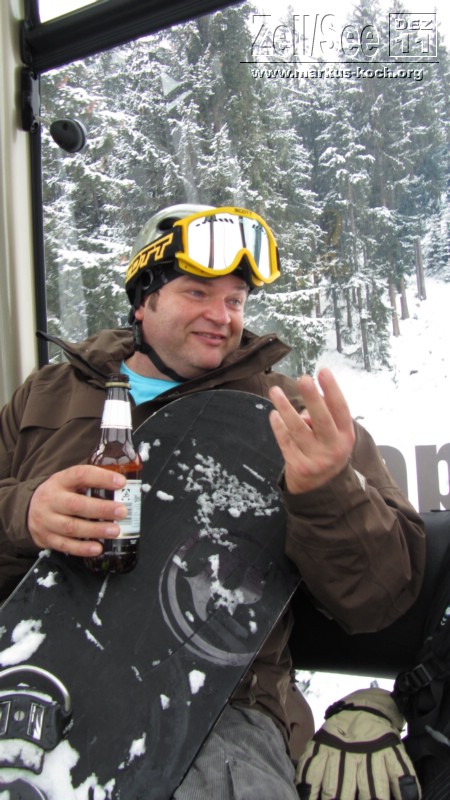 Eine Stunde später erreichten wir letztendlich Saalbach. Dort wurde eine neue Bahn – die Benkogelbahn – eingeweiht. Es gab Glühwein und die Liftfahrt für Umme.