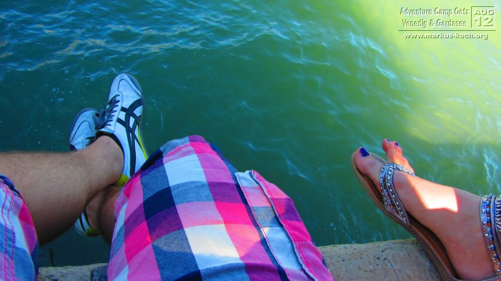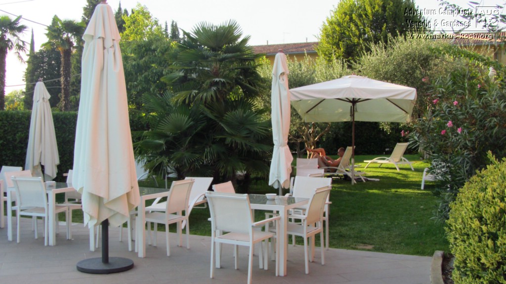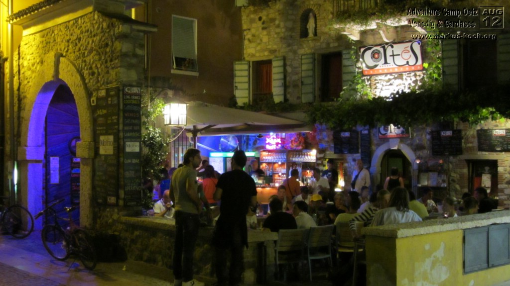 Am ersten Tag in Lazise haben wir die uns kostenlos zur Verfügung gestellten Fahrräder geliehen und sind an einen Strand im Süden von Lazise gefahren – direkt unterhalb eines Campingplatzes. War ganz schön heiß dort, da keine Bäume als Schattenspender vorhanden waren, aber es war Sonne Sonne Sonne da und der Gardasee nur 5 Meter von uns zum abkühlen entfernt 🙂 Nachdem wir am späten Nachmittag zurück an der Unterkunft waren, hüpften wir noch in den eigenen Pool. Abendessen innerhalb der schönen Burgmauern von Lazise. Aber: Touris Touris Touris!!!! Hilfe – wie Ameisen in diesen 10 Gassen – grad zur Ferienzeit würden wir das bei einem nächsten Besuch sicher ausklammern. Genial war dann noch eine coole Cocktailbar „Cortes“ – absolut empfehlenswert!