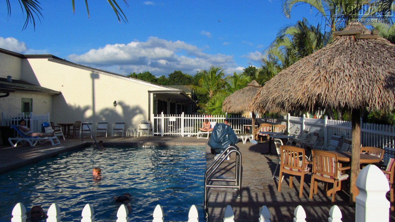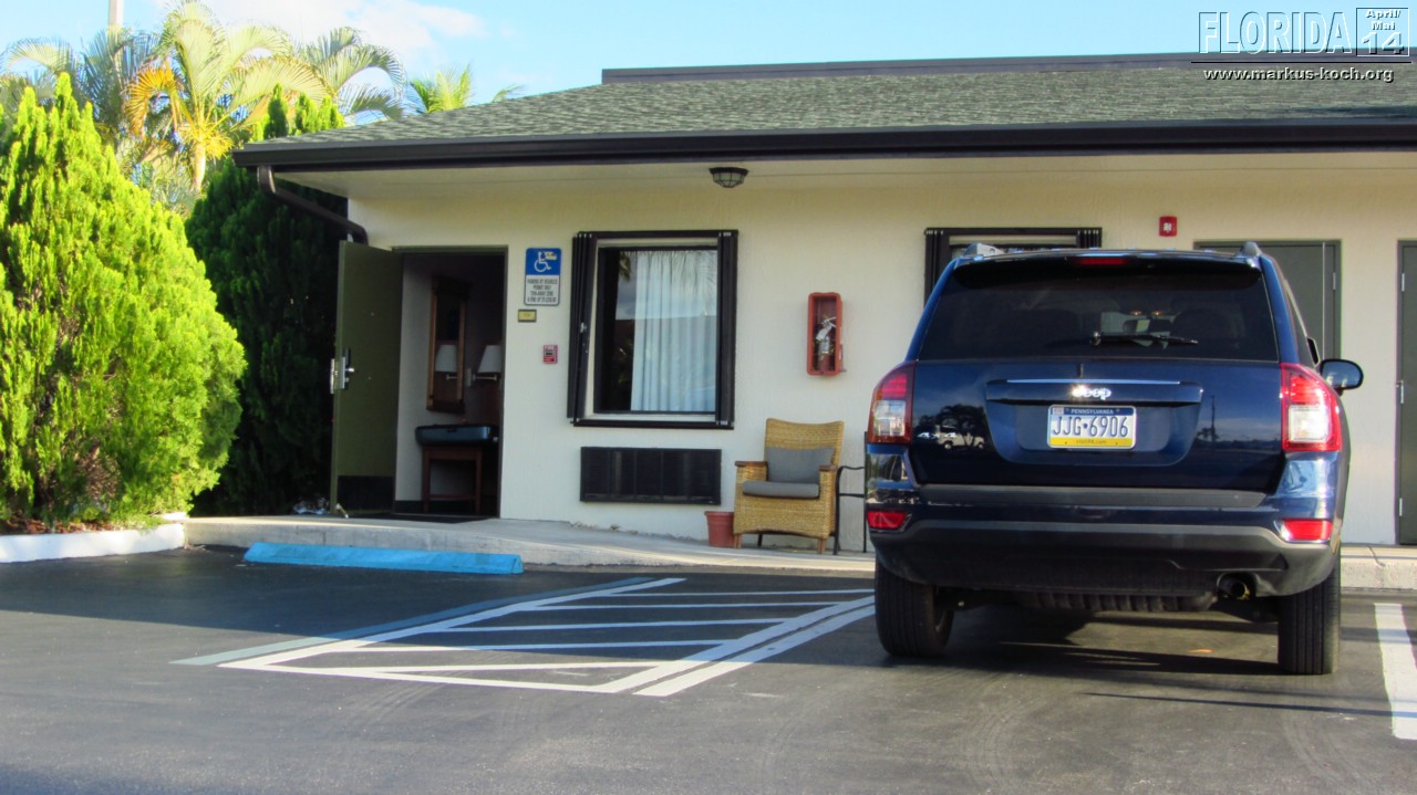 Der Flug mit der Lufthansa A380 war einwandfrei, wir hatten super Platz, da wir zu zweit in einer Dreierreihe saßen konnten. Nach einer schnellen Entgegennahme des Mietwagens (Midsize SUV: Jeep Compass) bei Alamo fuhren wir direkt zu unserer ersten Unterkunft in Homestead „Travellodge“. Ein günstiges Motel (ist echt OK für den Preis) für 2 Nächte inkl. Frühstück (auch recht OK!). Nach dem Check-In haben wir im Walmart noch ein paar Kleinigkeiten geholt und fuhren ans Meer (Biscane NP), wo wir noch die letzten Sonnenstrahlen genießen konnten. Erstes Abendessen bei Wendy’s – naja ging so…!