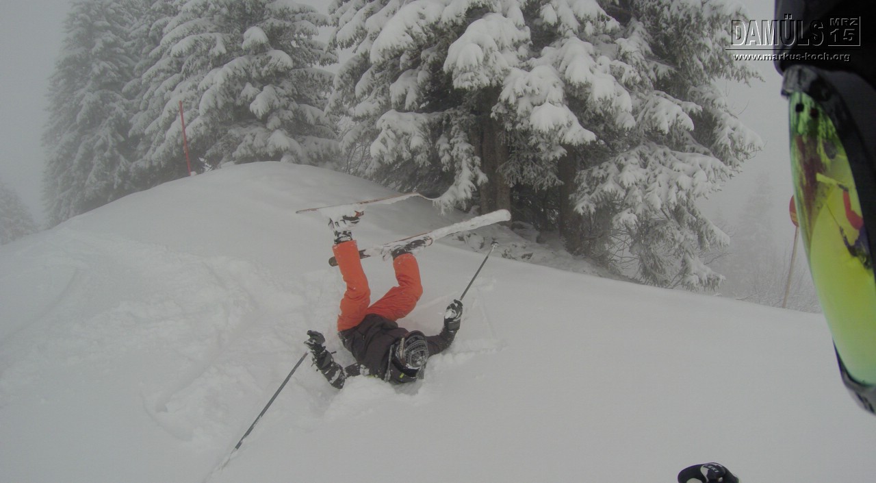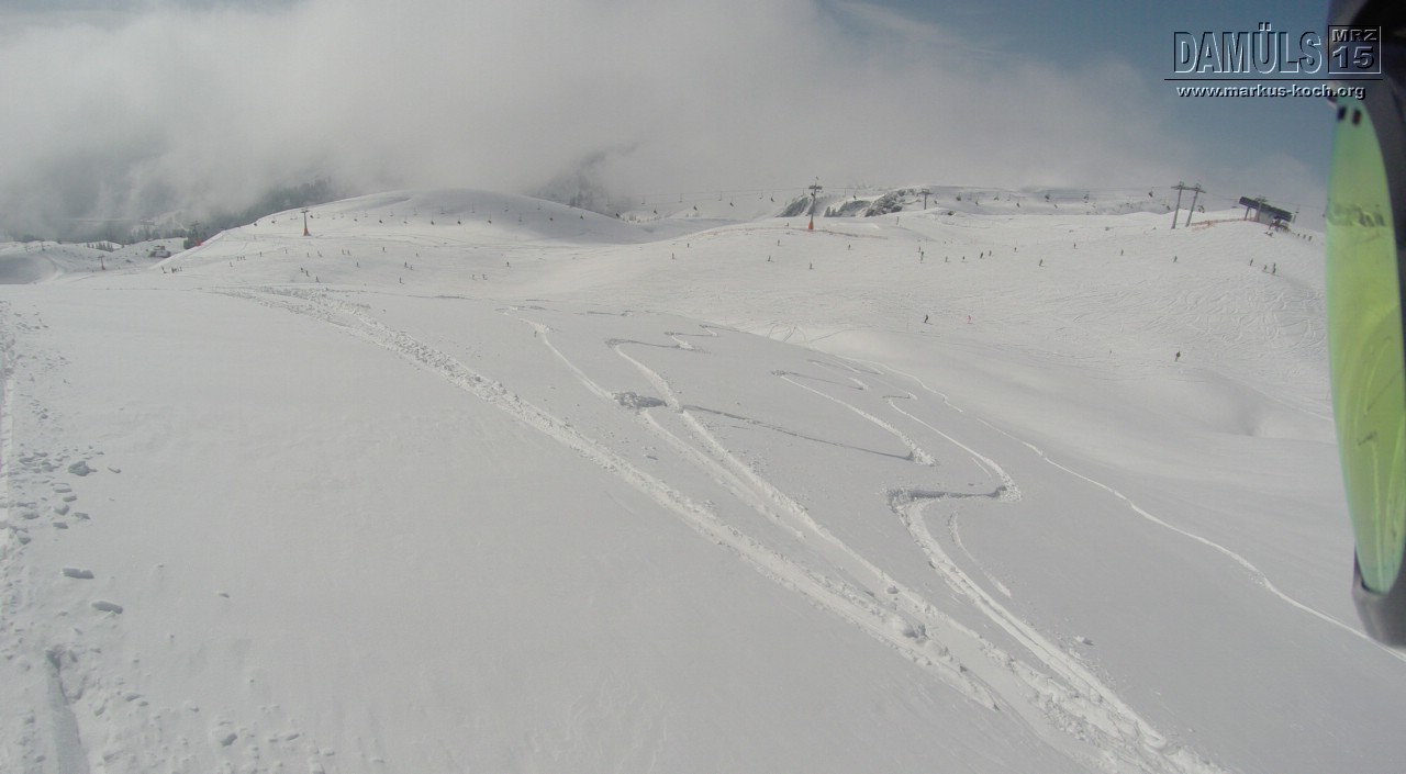Besonders toll war der Sonntag morgen, zwar in höheren Lagen keine Sicht durch Wolken, aber dort wo man etwas gesehen hat, konnten wir ca. 20 cm frischen Powder den Kampf ansagen. Absolut Klasse! Sowohl auf den Pisten, die wir teilweise entjungfert hatten, als auch auf den bezuckerten Hängen abseits der Pisten.
