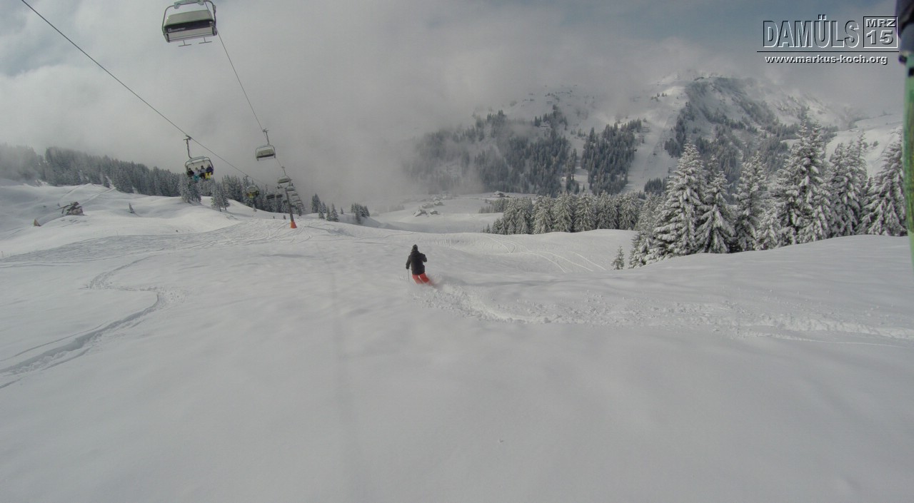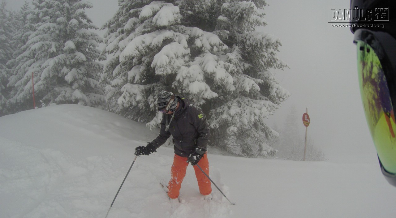 Das Skigebiet ist echt gut. Viele rote oder schwarze anspruchsvolle Pisten bis nach Mellau hinüber. An einem Tag kann man jedoch das Gebiet ganz gut abfahren/erkunden. Das erstaunliche ist bei Neuschnee: ÜBERALL – wirklich überall – kann man neben den Pisten hinausfahren ohne groß aufpassen zu müssen. Sollte es mal 50 cm Neuschnee geben und danach die Sonne rauskommen, gibt es glaube ich nichts schöneres, als in Damüls zu sein 🙂