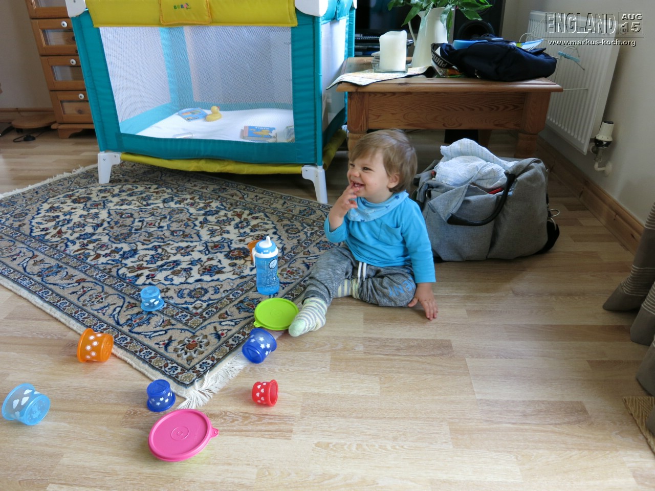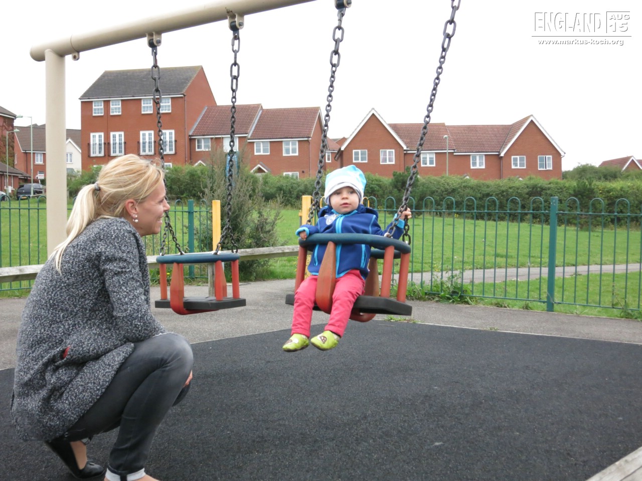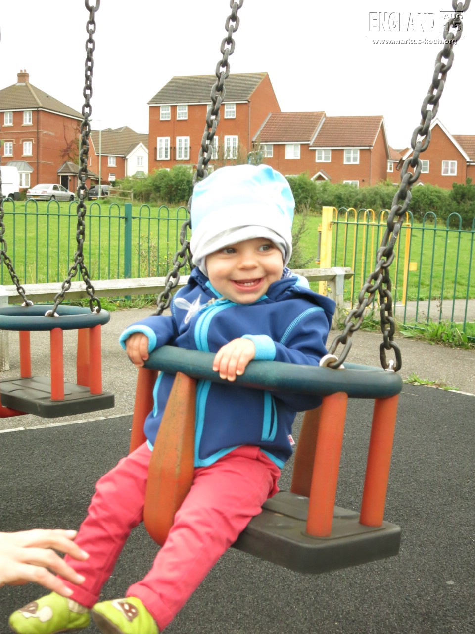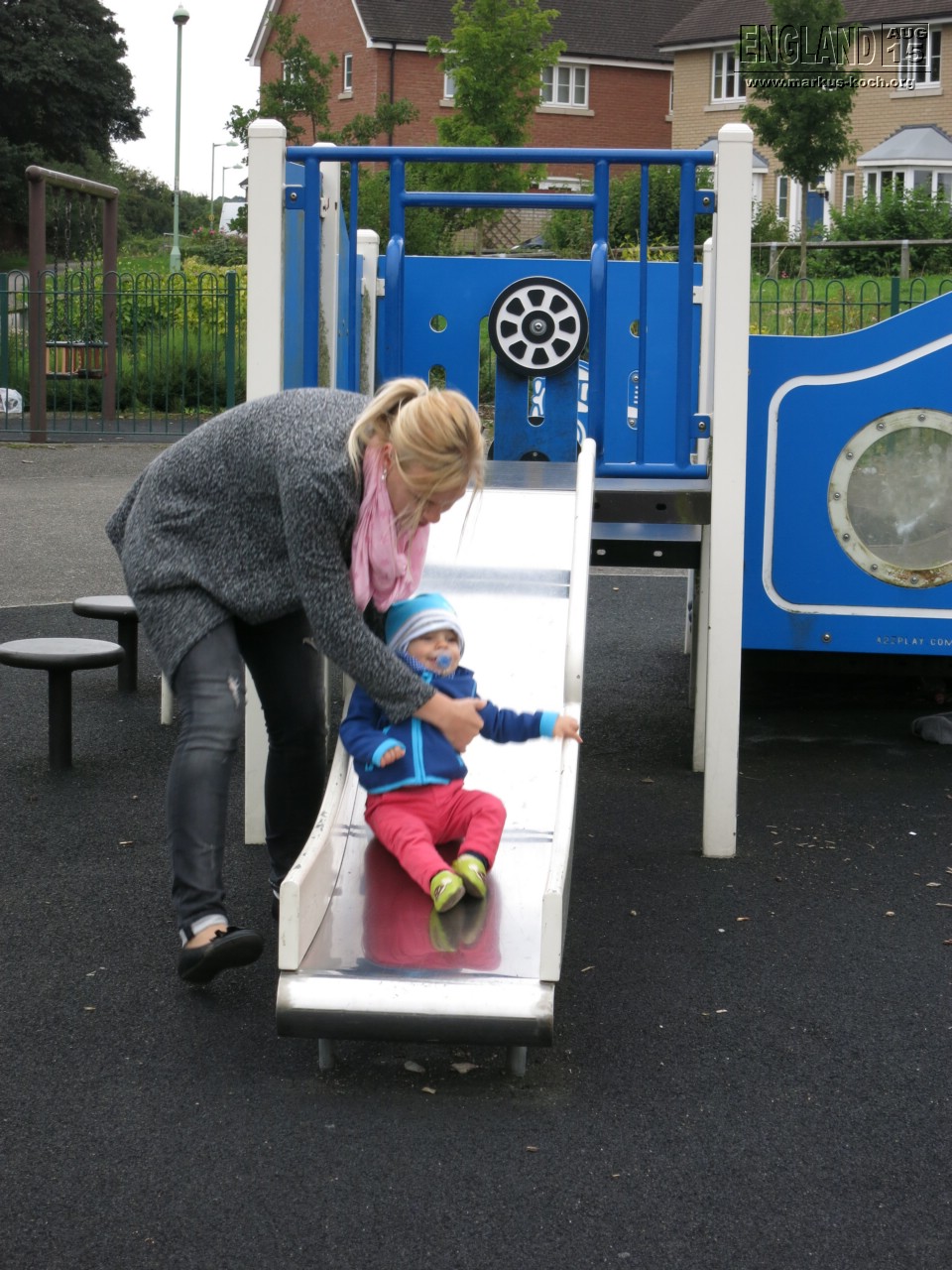 Am Sonntag war nicht viel geplant, ein ausgedehntes Frühstück daheim, dann ein kurzer Besuch bei Phils Mum, die nicht weit weg wohnt und am Nachmittag ein Spaziergang ins Zentrum von Haverhill. Auf dem Rückweg konnte sich unser Sohn auf einigen der vielen Spielpätze austoben. Er hatte sichtlich Spaß. Gerade jetzt, wo er anfängt die ersten Schritte ohne Festzuhalten zu gehen 🙂