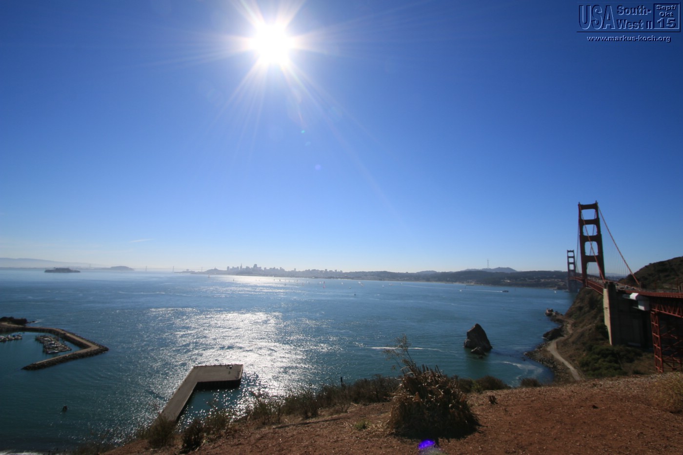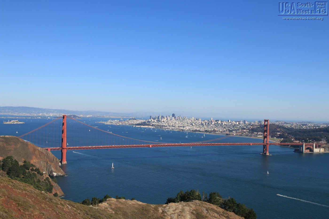 Marin Headlands – toller Ausblick auf die Golden Gate Bridge und SFO mit Alcatraz.