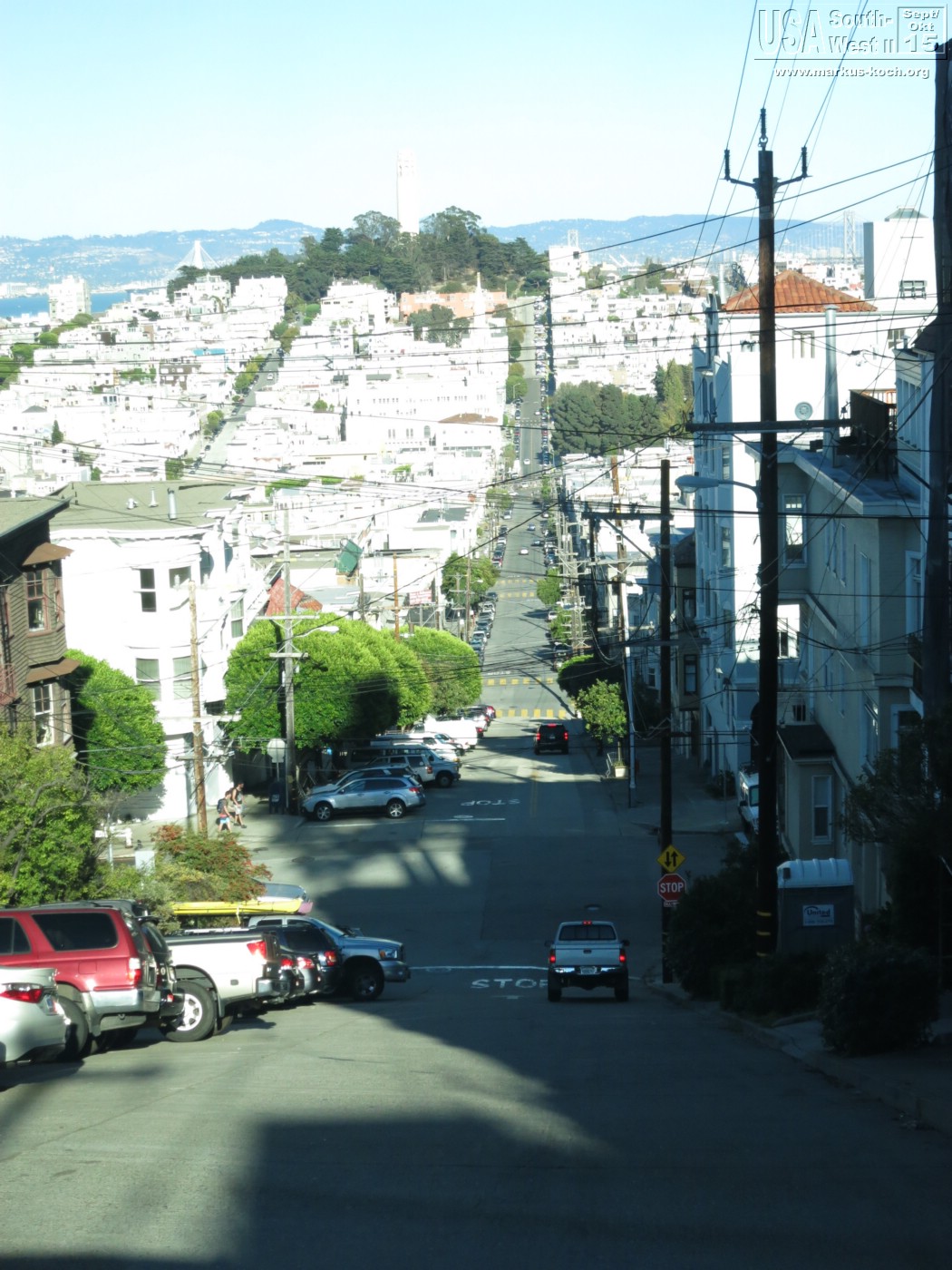 Dann wollten wir über die Lombard Street fahren – aber es war einfach die Hölle los – Wochenends sind scheinbar auch alle Amis auf der Gasse! Das machen wir dann morgen.