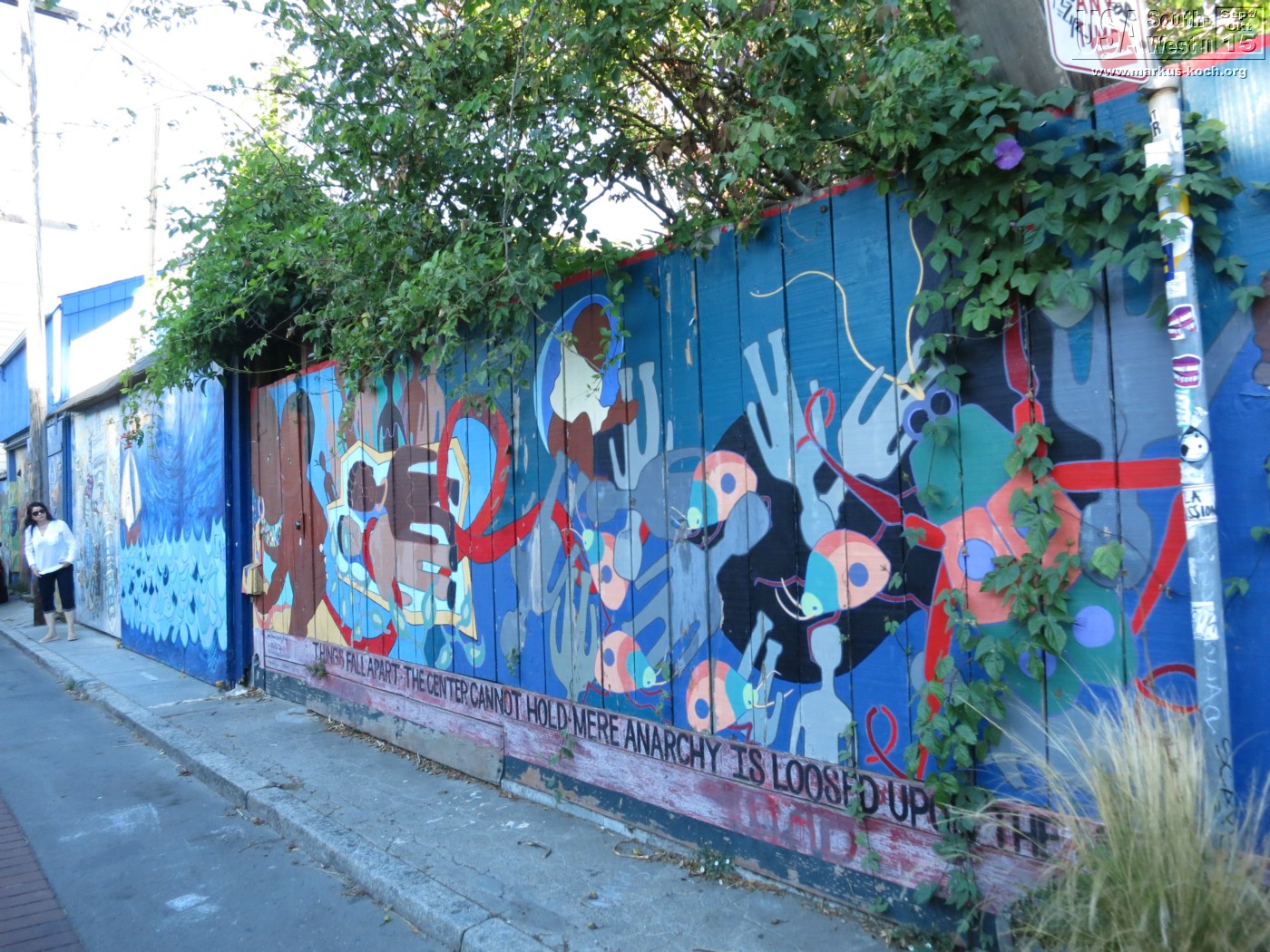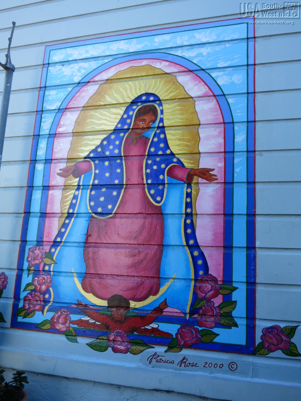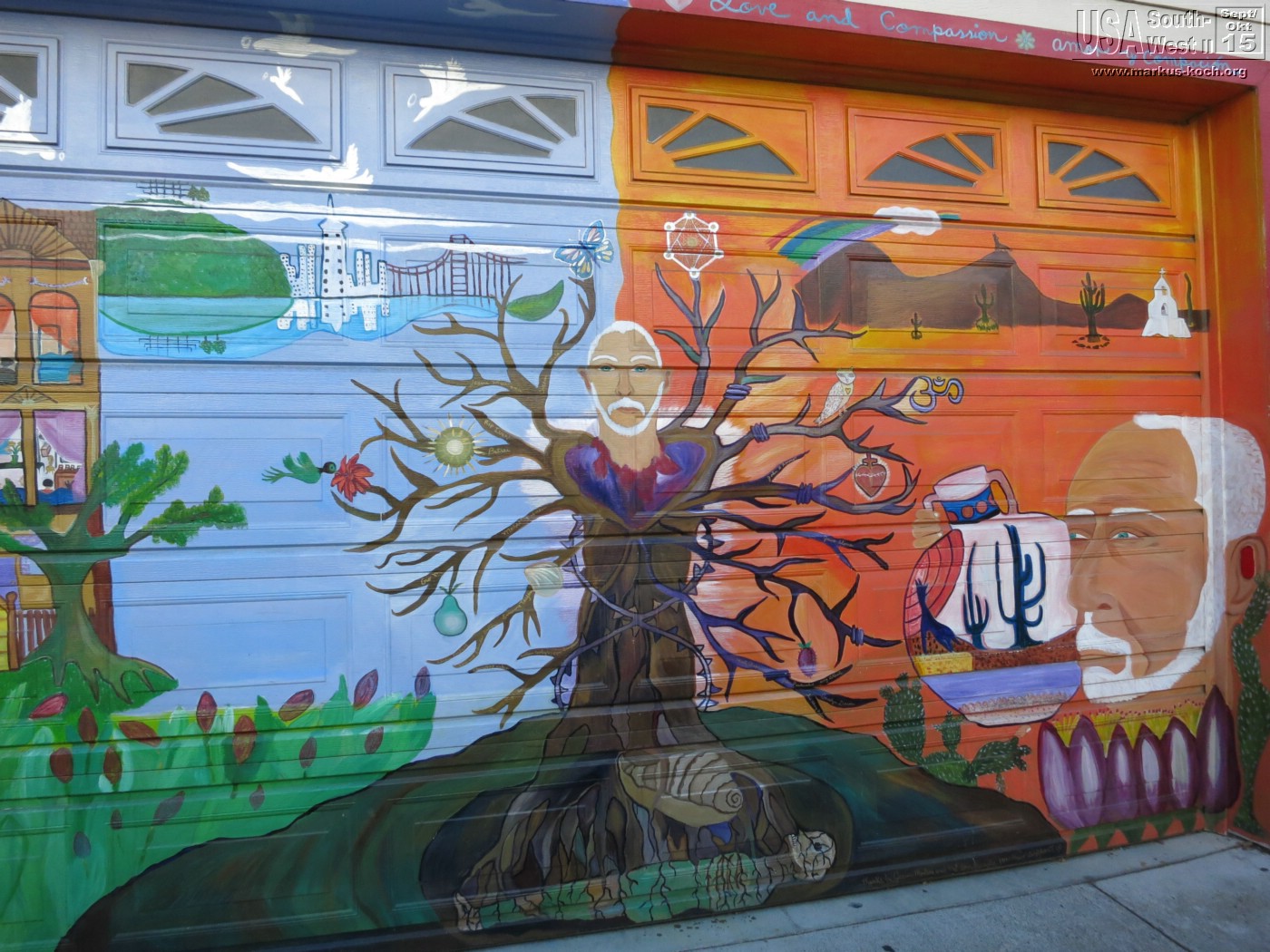 Weiter durch die Pacific Heights – etliche neuere high Level Shoppingläden – zum Mission District. In diesem Mexikanischen Viertel gibt es viele Wandmalereien. Wie 2008 haben wir auch dieses Mal die schmale Balmy Alley Gasse wieder gefunden. Die ganze Gasse mit Malereien – echt schön!
