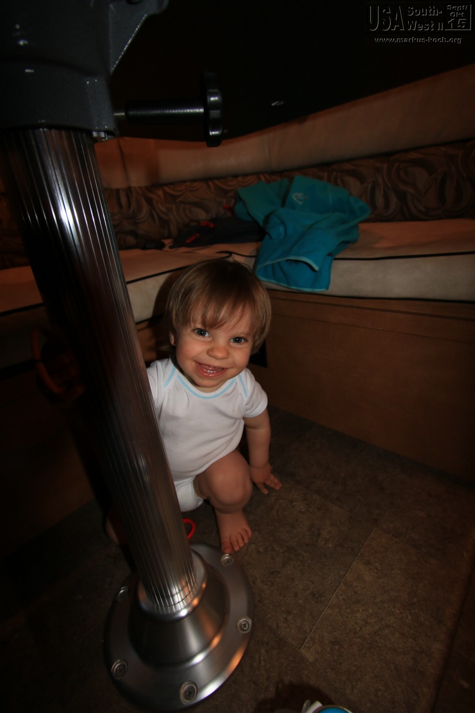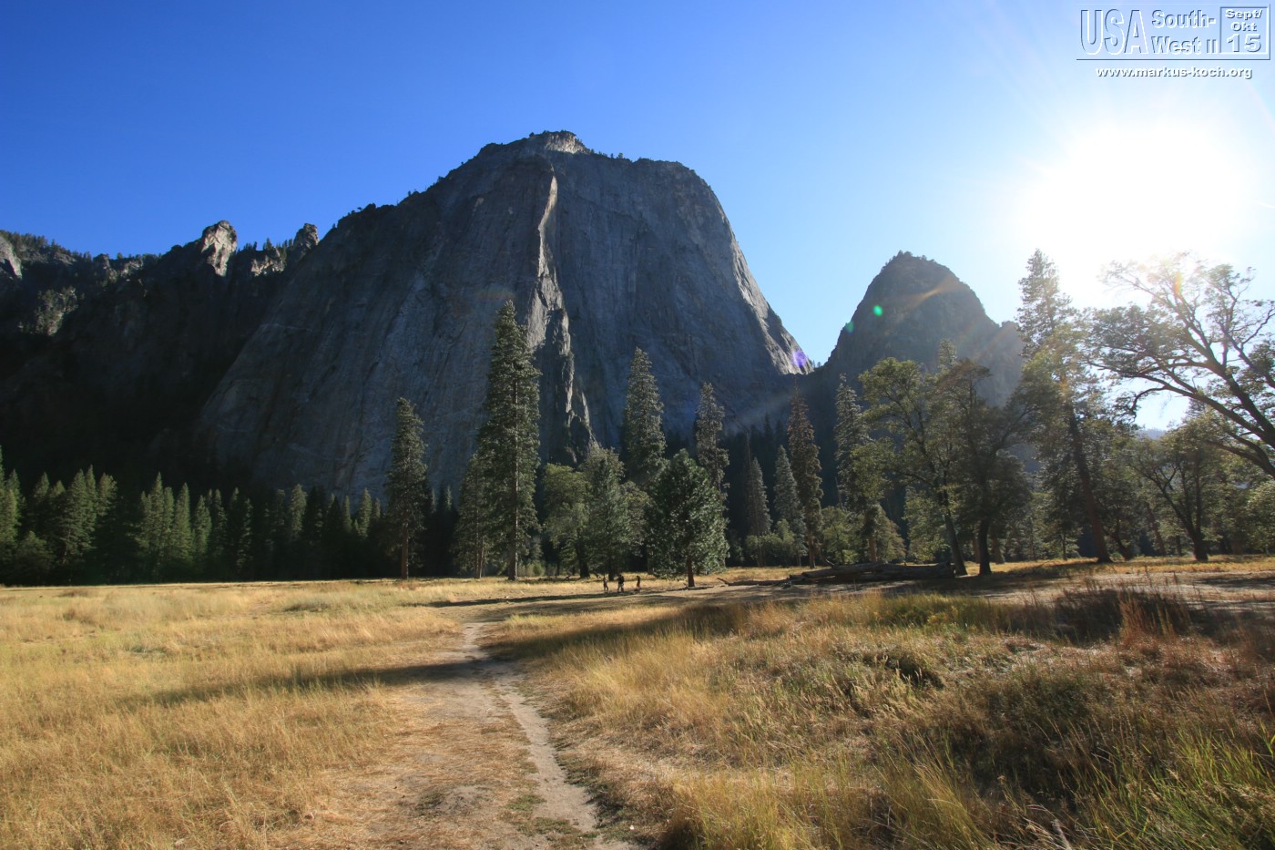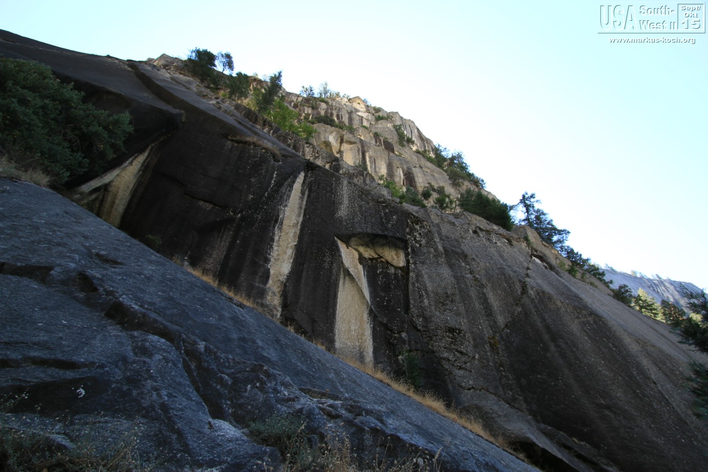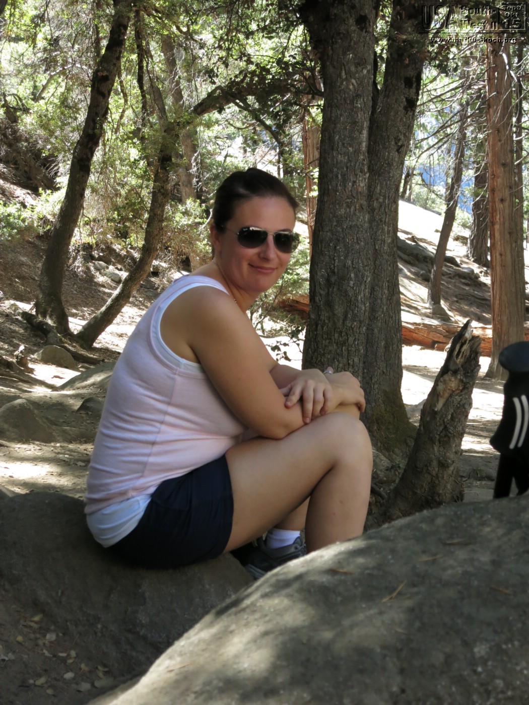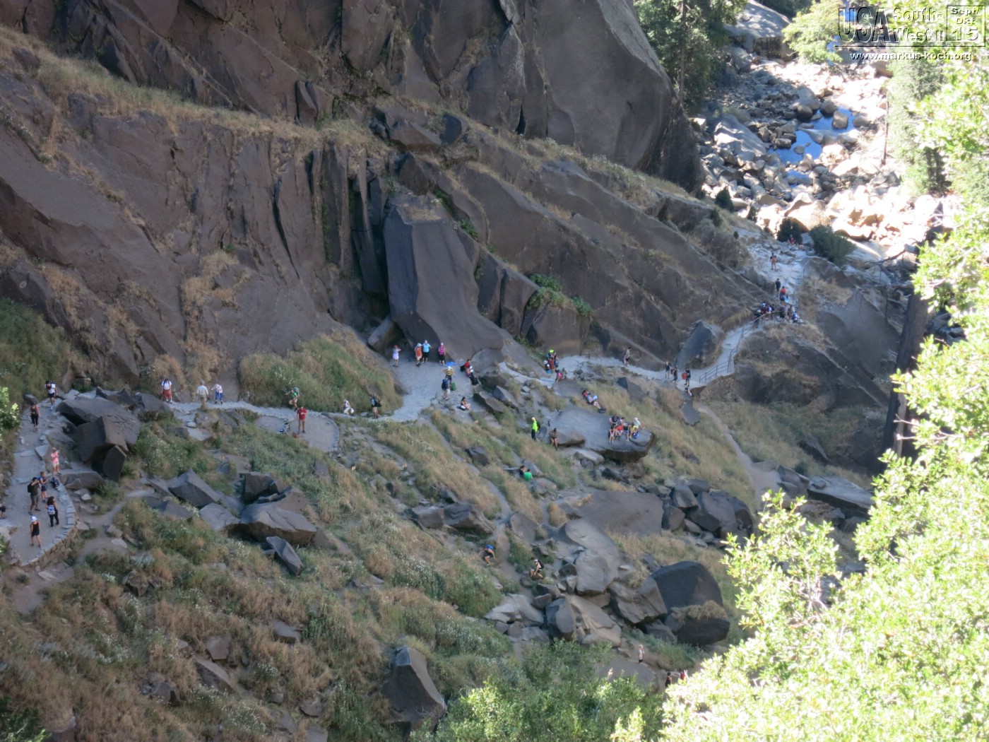 Nach leckerem Frühstück im WoMo parkten wir dieses an einem Trail-Parkplatz um die Ecke vom Upper Pines CG. Von da wanderten wir mit Luca in der Kraxe auf dem Mist-Trail zu den Vernal Falls und noch ein Stückchen den Nevada Falls entgegen. Der Aufstieg war mit 600 – teils steilen aus dem Granit gesprengten – Treppenstufen nicht Ohne! Aber der Ausblick auf die Wasserfälle war echt toll. Im Frühjahr ist es bestimmt noch eindrucksvoller, wenn richtig viel Wasser von oben kommt!