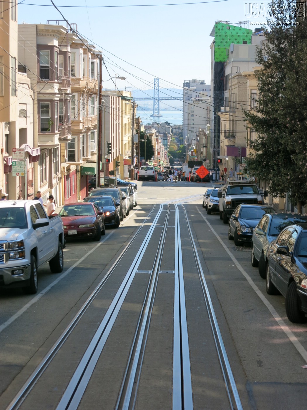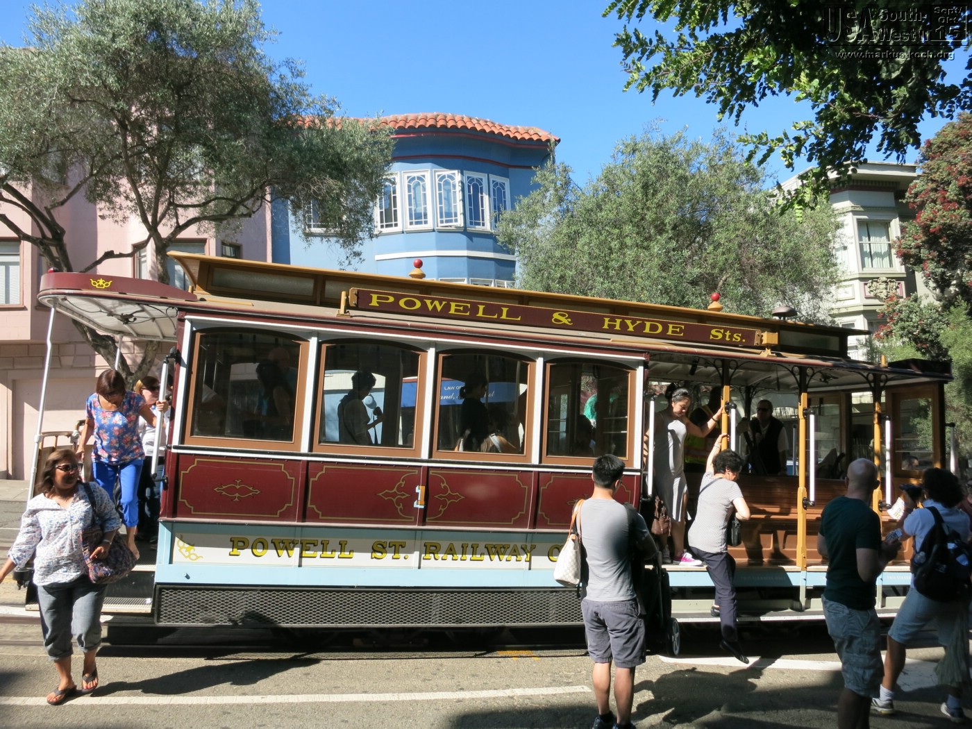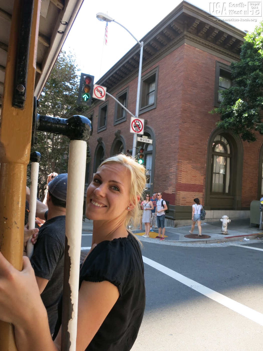 Montag Morgen wollten wir ohne lange anstehen zu müssen Cable Car fahren. Der Plan ging leider nicht auf, da sich selbst um 10 Uhr schon eine 2 stündige Schlange gebildet hat. Nach einem Tipp gingen wir eine Haltestelle weiter, da am Startpunkt nicht ganz voll gemacht wird, und stiegen da nach „nur 45 Minuten“ in die Powell – Hyde Linie ein und auch Retoure.