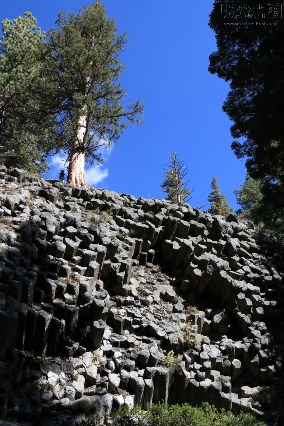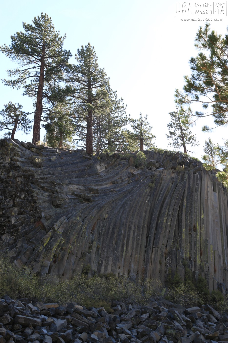 Am Samstag ging unsere Reise weiter. Zunächst ca. 1 h entfernt zum Devils Postpille National Monument. Das ist ein Gebiet mit großen Basaltsteinen. Ich hätte mir ehrlich gesagt etwas mehr erwartet. Gerade da ich ein weiteres Bild erhoffte, welches in dem Reiseführer war. Die Straße dorthin war auch nicht ohne, da sie teils nur einspurig war. Aber auch das schaffte ich, Übung macht den Meister.