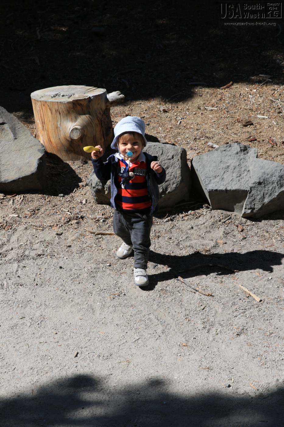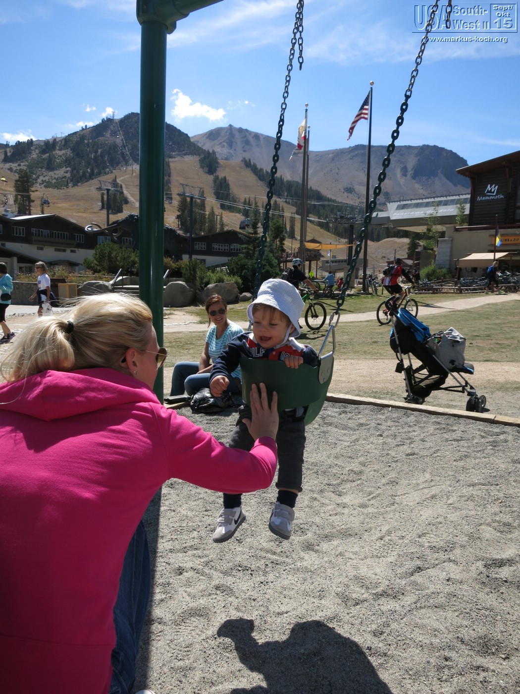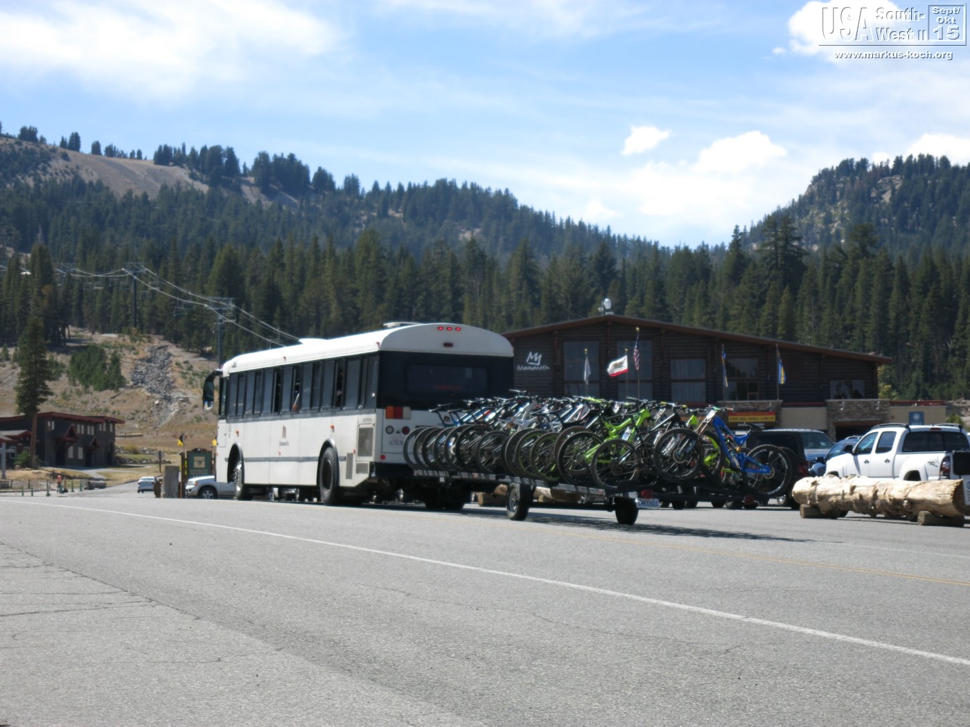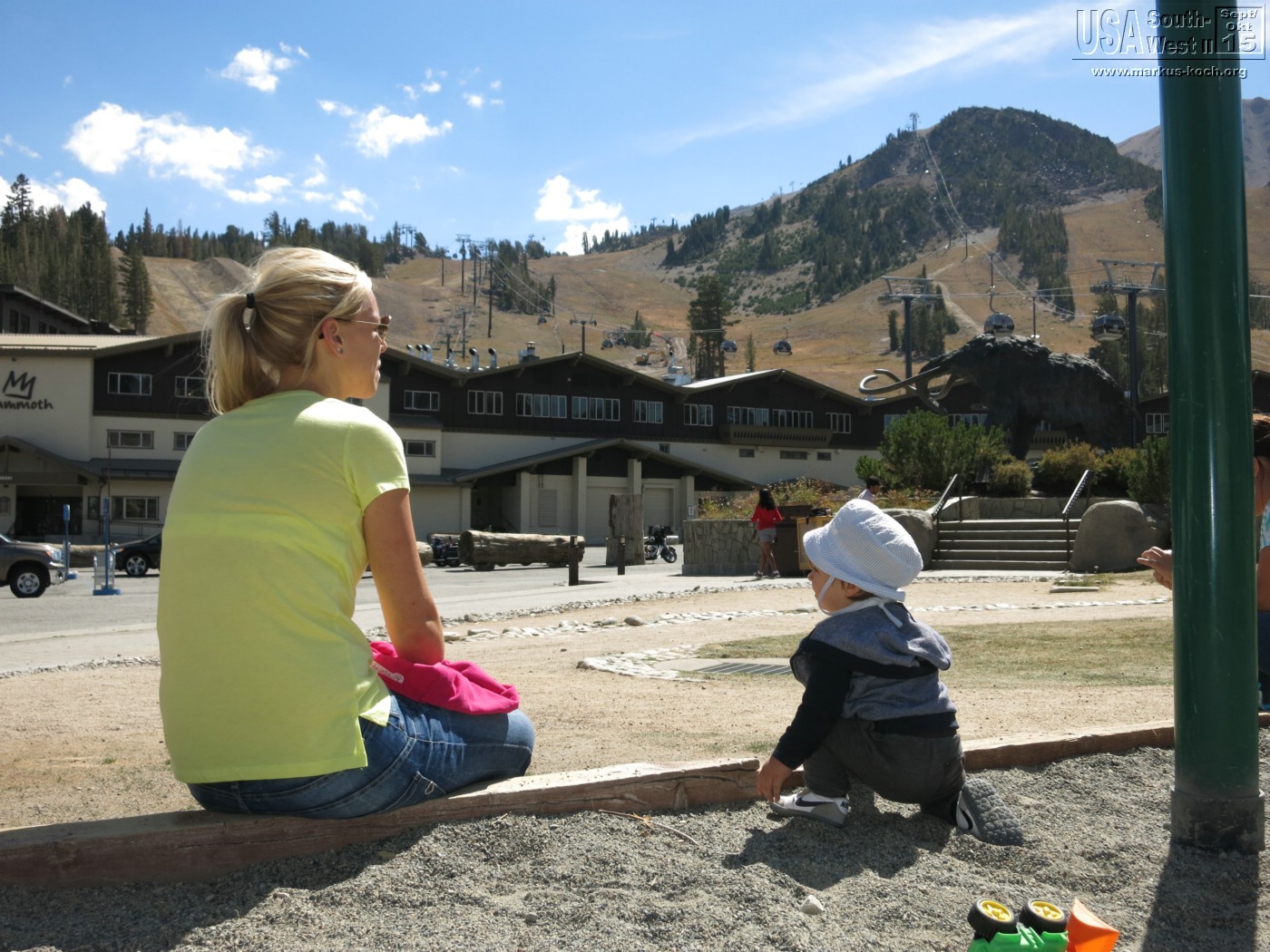 Interessant war, dass Devils Postpille hinter einem Skigebiet „Mammoth Lakes“ (2.700 m) gelegen war. Die Lifte wurden von Bike-Downhiller genutzt, die zu Massen die Berge hinabheizten. Endlich gab es auch mal wieder eine Schaukel für Luca!