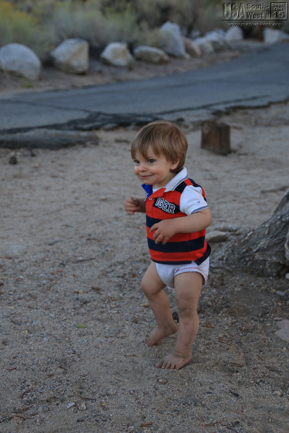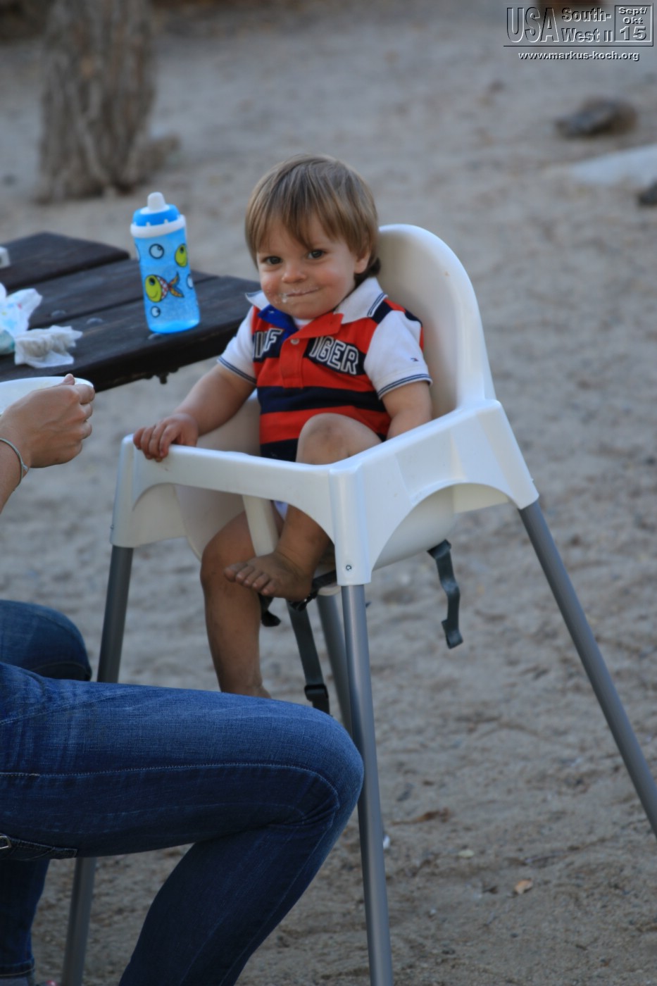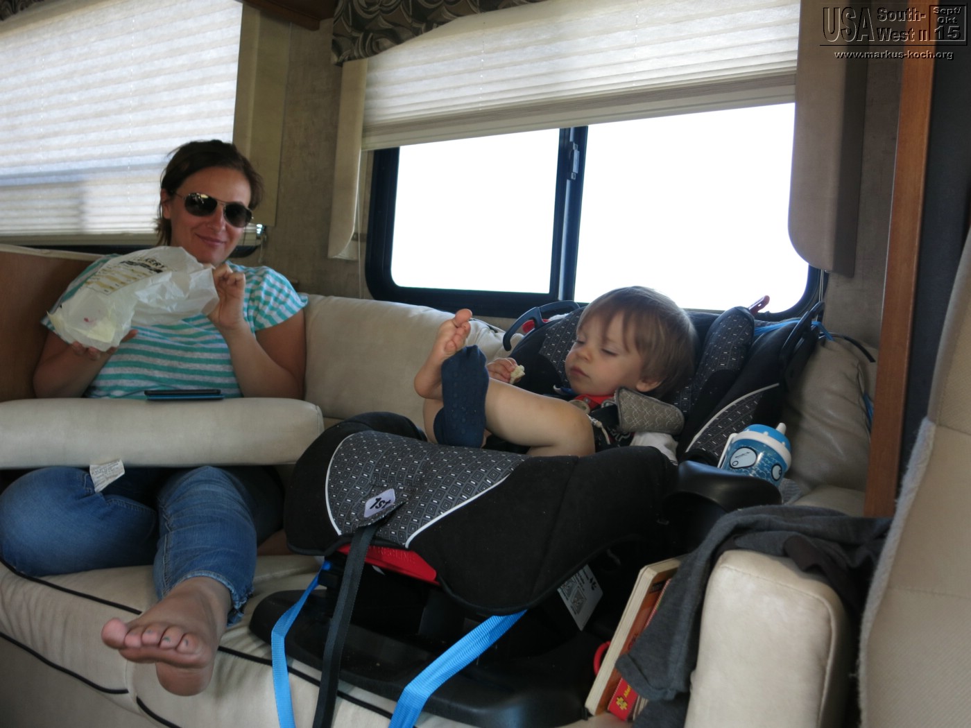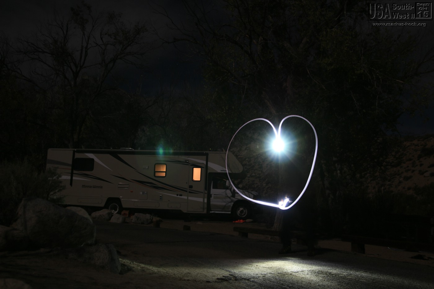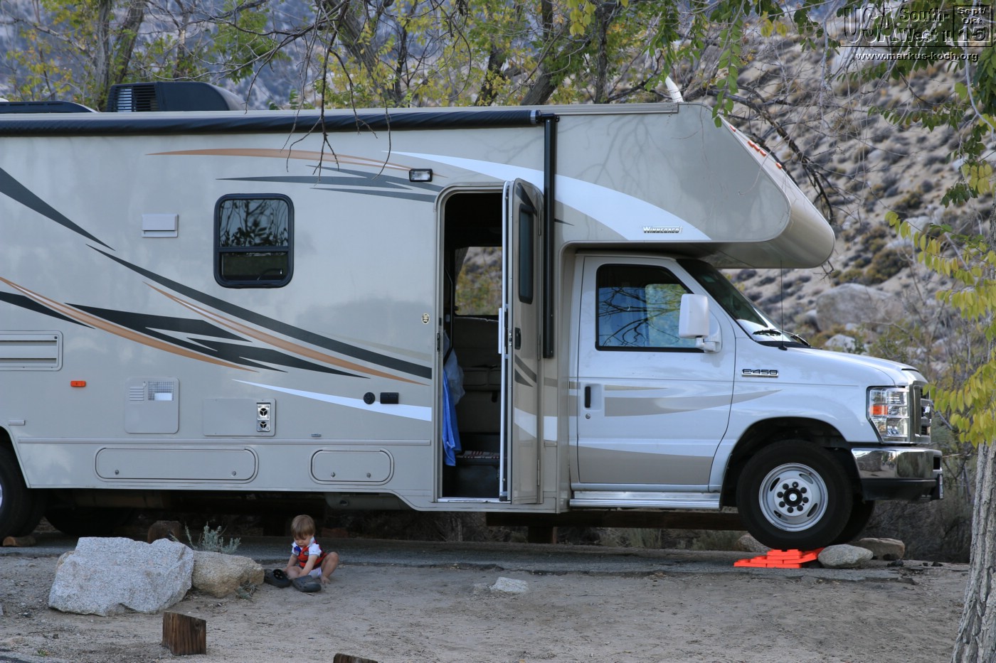Durch Bishop und Lone Pine ging es durch die Alabama Hills auf direktem Weg zu unserem CG Lone Pine. Nach dem wir das RV gelevelt hatten konnten wir die Natur genießen. Hinter unserem RV ein Bach. Dann die Gebirgskette des höchsten Berges Mt. Whitney (4.400 m) der USA (außer Alaska). Bei Lagerfeuer grillten wir mal wieder lecker Burger und haben die Abendstimmung des Vollmondes absolut genossen. Luca bekam seinen Gute Nacht Brei Outdoor, nachdem er die Site halb umgewühlt hatte 😉