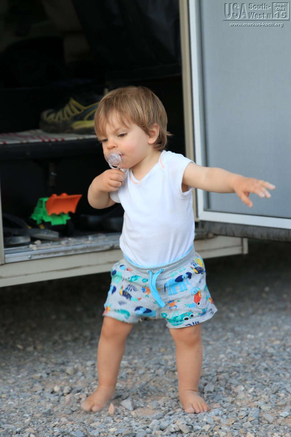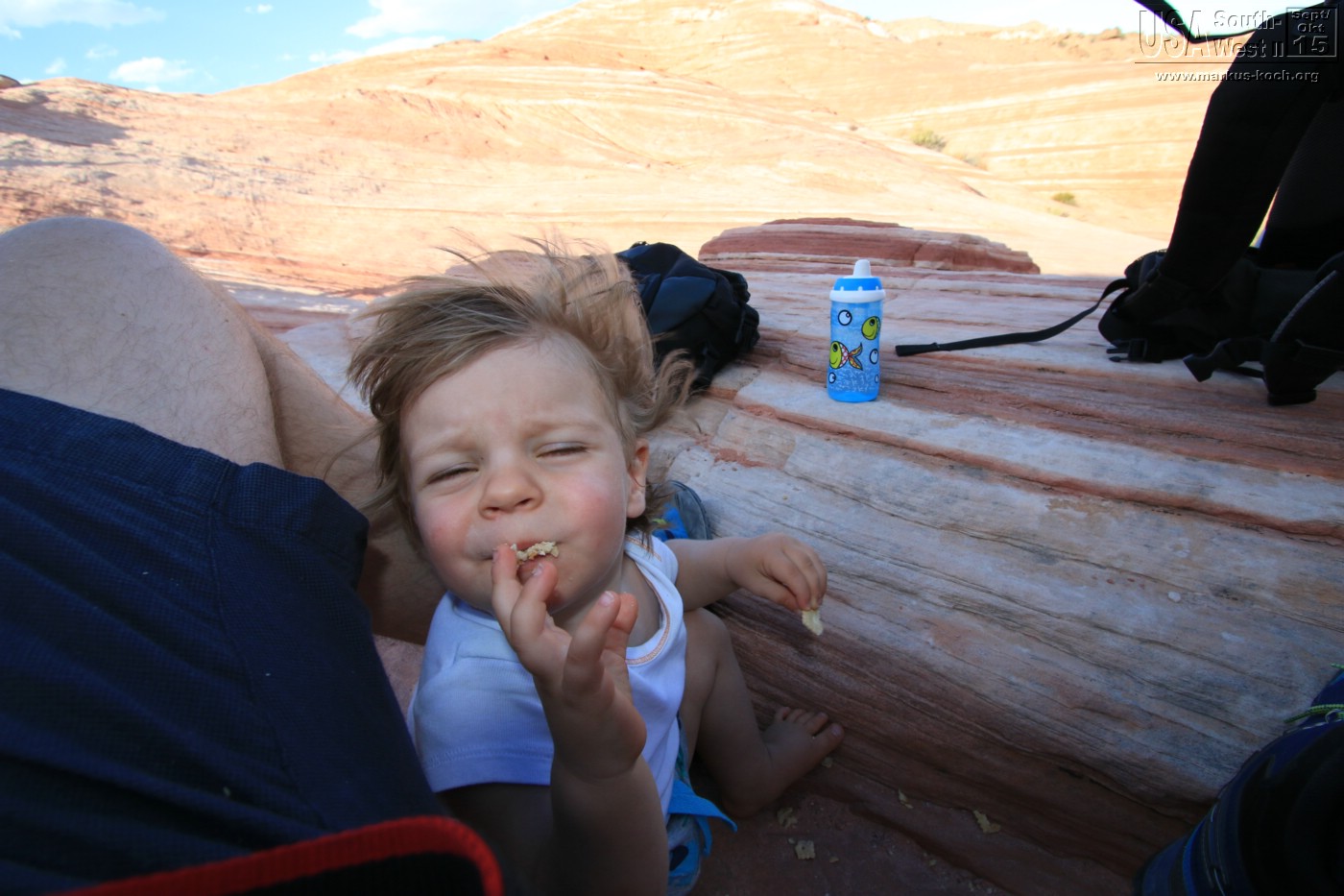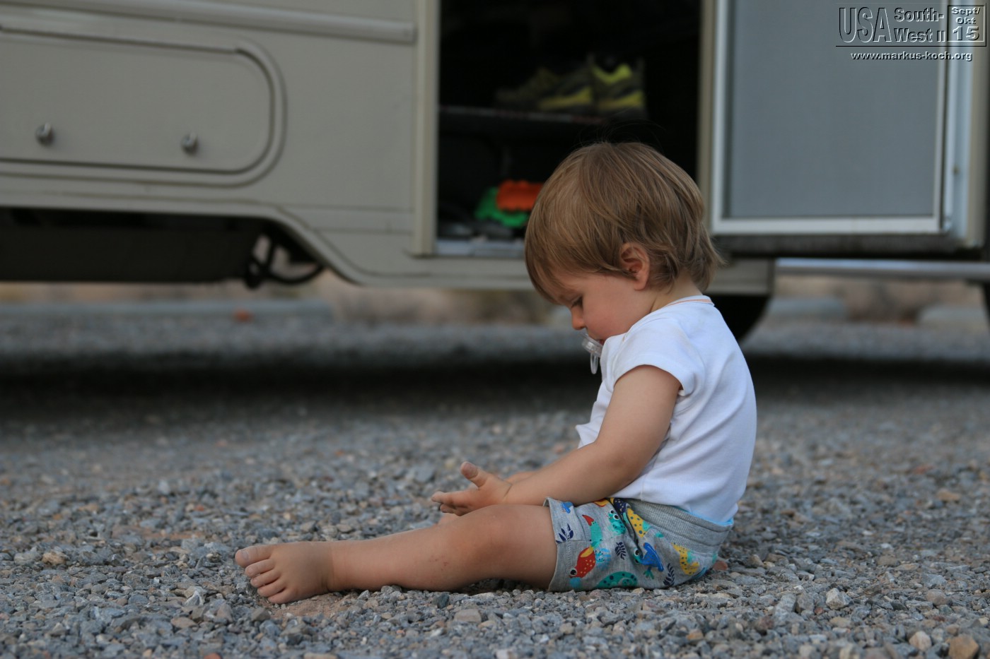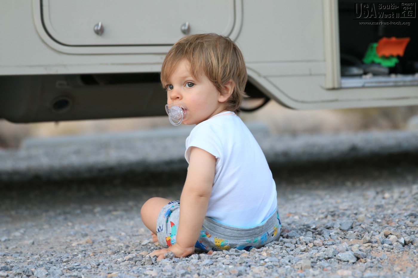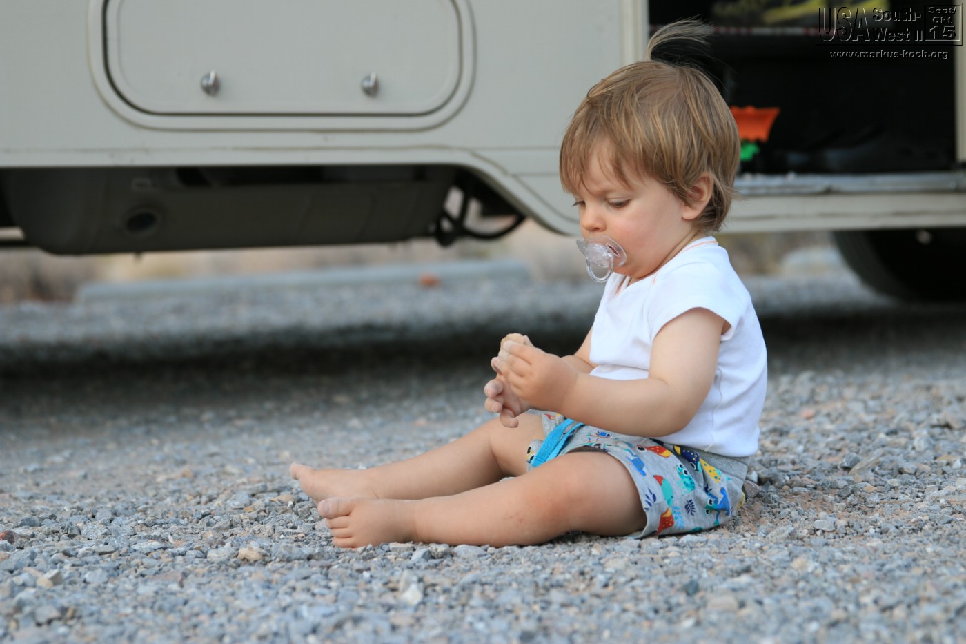 Luca wollte aber auf dem Rückweg nicht mehr so recht mitmachen. Es war wieder heiß und es blies ein heftiger Wind in dieser sandigen Gegend – keine gute Kombination 😉