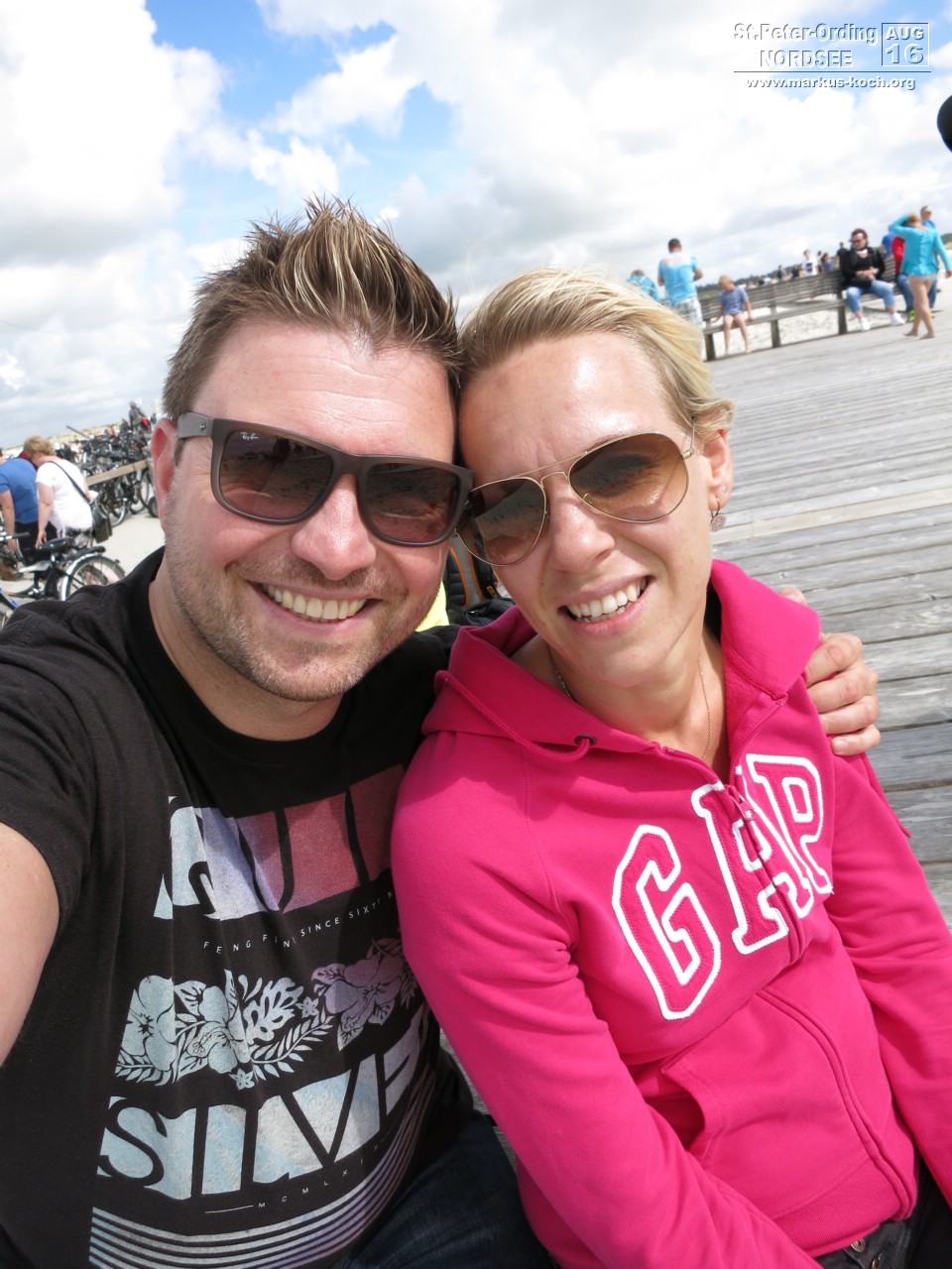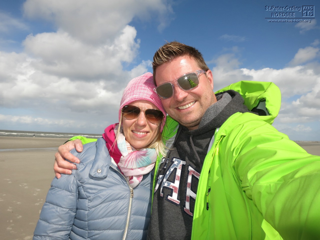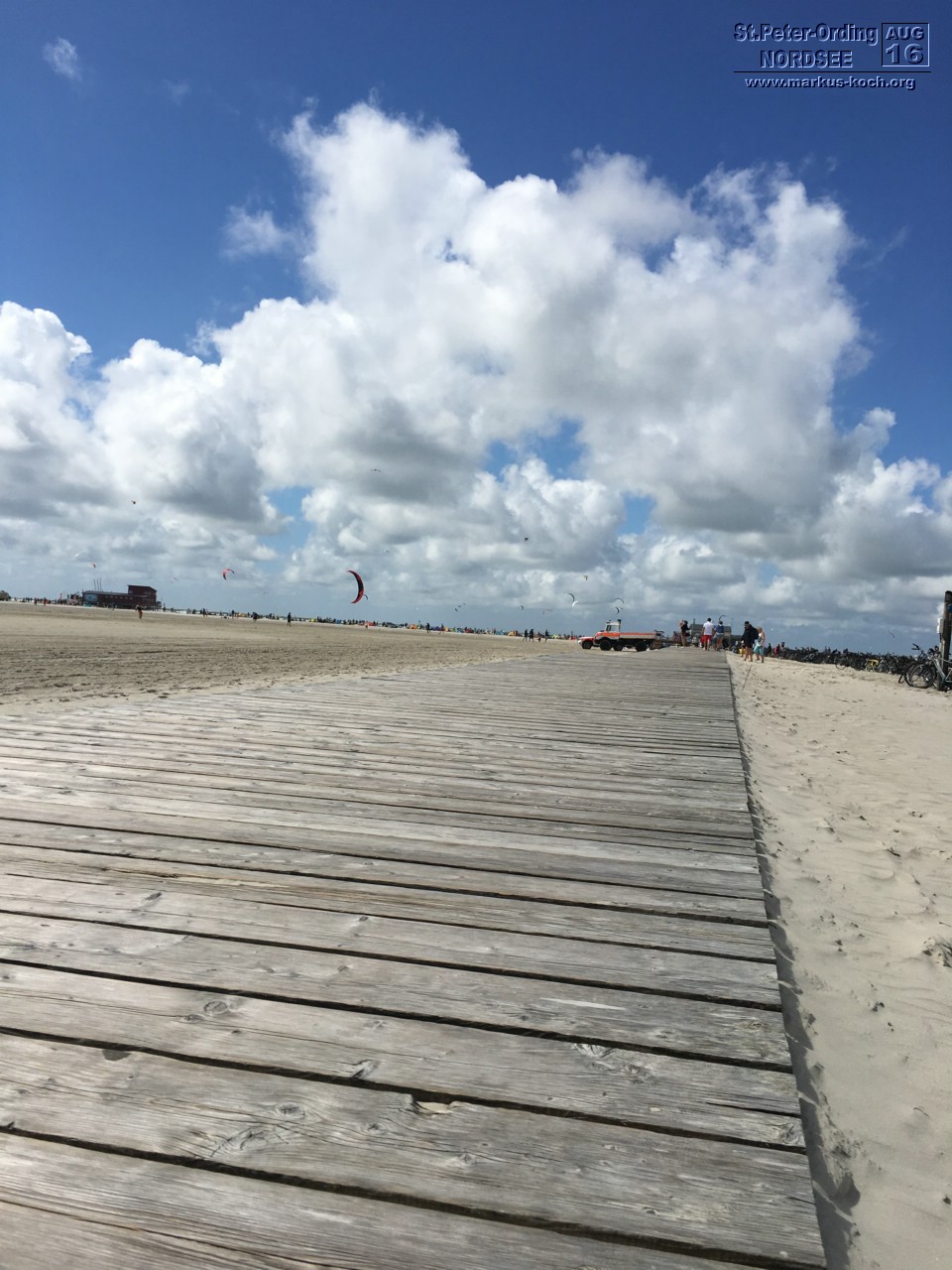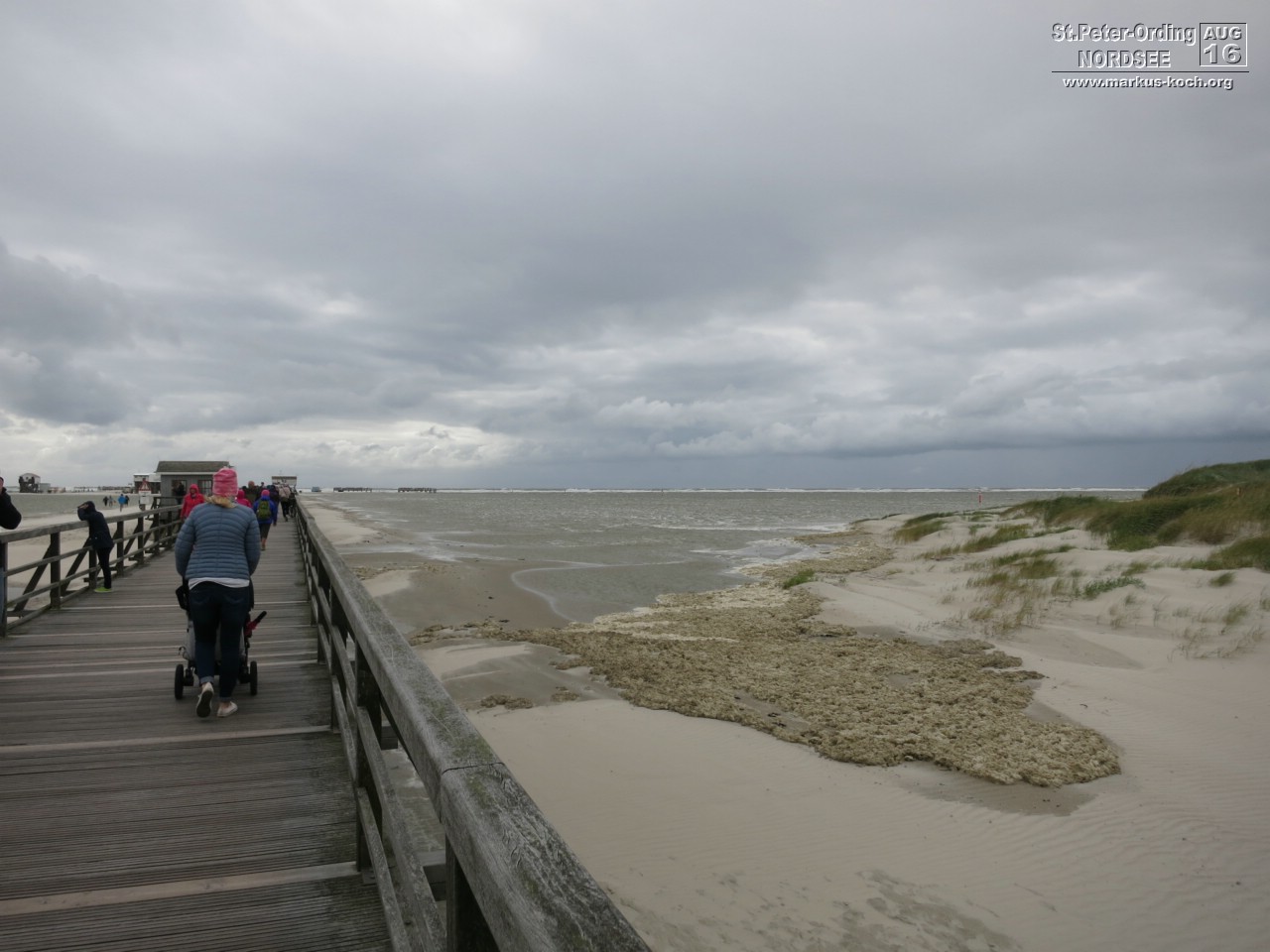 In Sankt Peter-Ording (SPO) angekommen konnten wir noch nicht in unsere Ferienwohnung, weswegen wir uns zu Kaffee in einem wunderschön angelegten Strandhaus entschlossen. Anschließend liefen wir auch gleich mal zum Strand von dort über einen Steg im Sand.