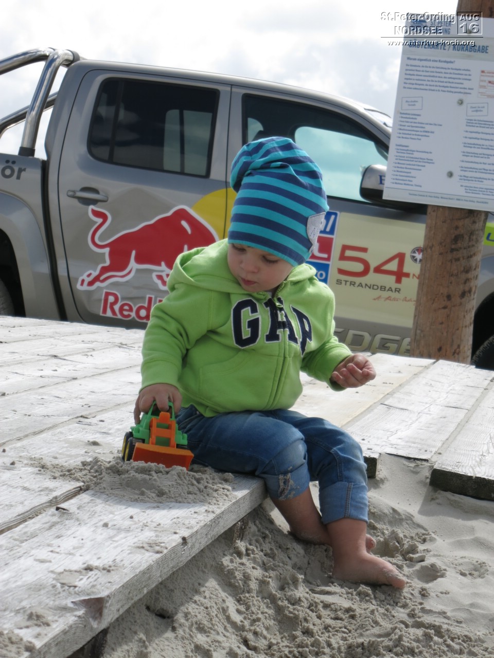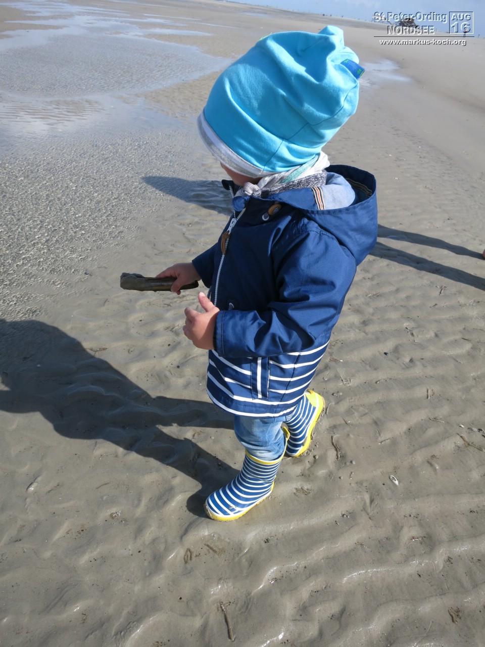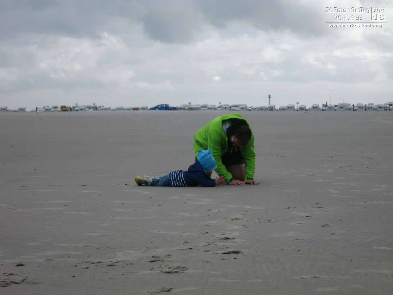 Unser Auto parkten wir direkt am Strand – das ist meines Wissens nur in SPO möglich. Ein paar Meter weiter suchten wir uns einen Strandkorb, welcher recht hoch stand und wo noch Sand für Luca zum Spielen vorhanden war. Kam ein kurzer Regenschauer verkrochen wir uns im Strandkorb. Luca gefiel auch ein Gang im Watt sehr gut. Er hatte – wie so oft – seinen Spaß 🙂