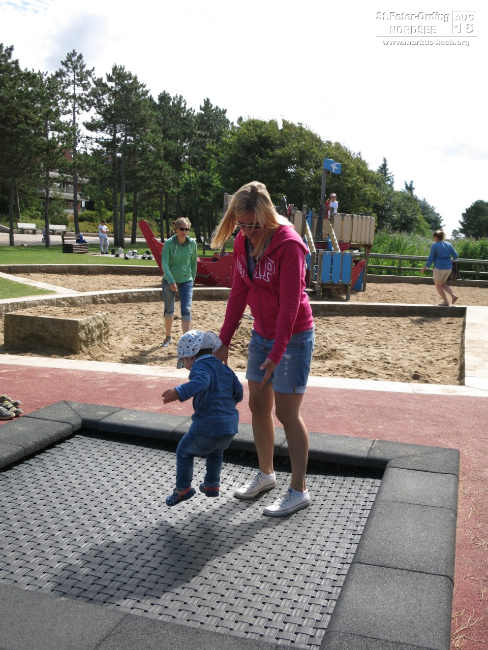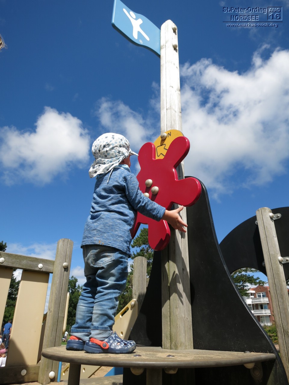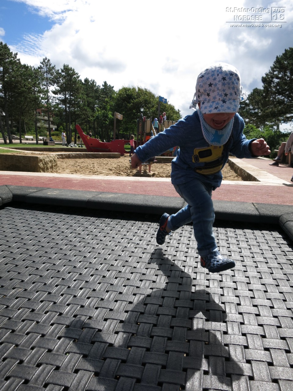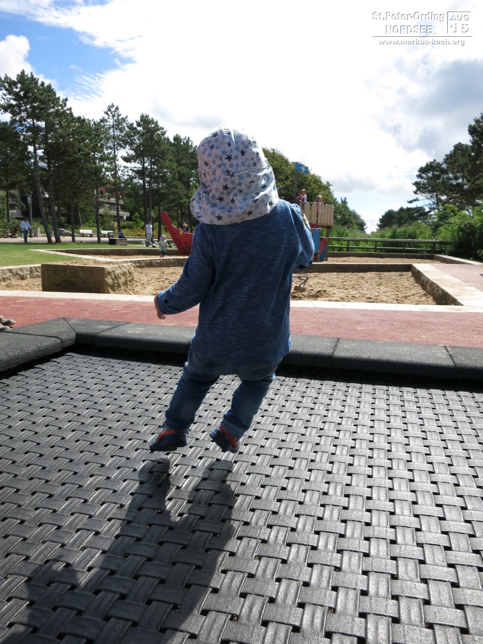 Da es vormittags noch frisch war, schauten wir uns in SPO-Bad zunächst die Strandpromenade an. Dort war ein Spielplatz, wo sich Luca prima austoben konnte.