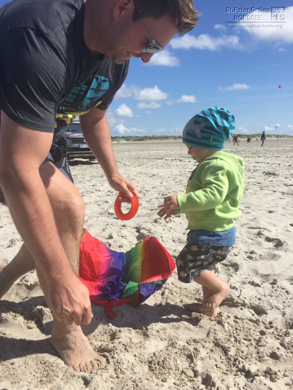 Am Nachmittag ging es wieder zum Strand, spielen, Kiter zuschauen, Drachen steigen lassen, den Luca am Vormittag gekauft bekommen hat.