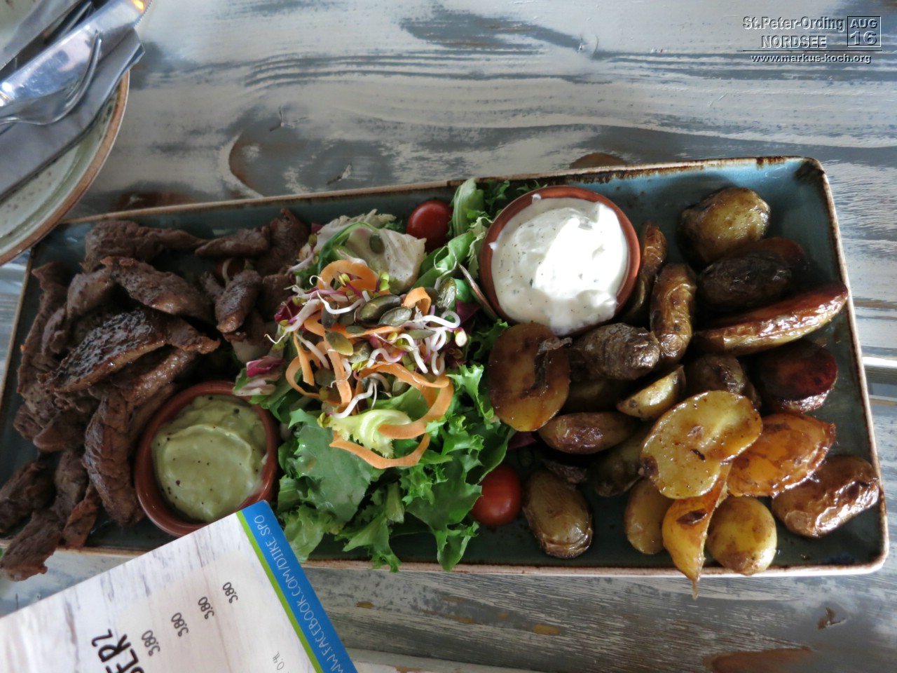 Abendessen gab es im Beach-Motel Restaurant: „dii:ke“. War lecker, aber etwas unkoordiniert da.