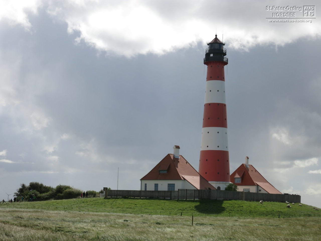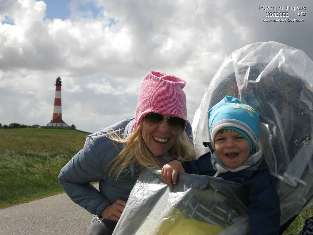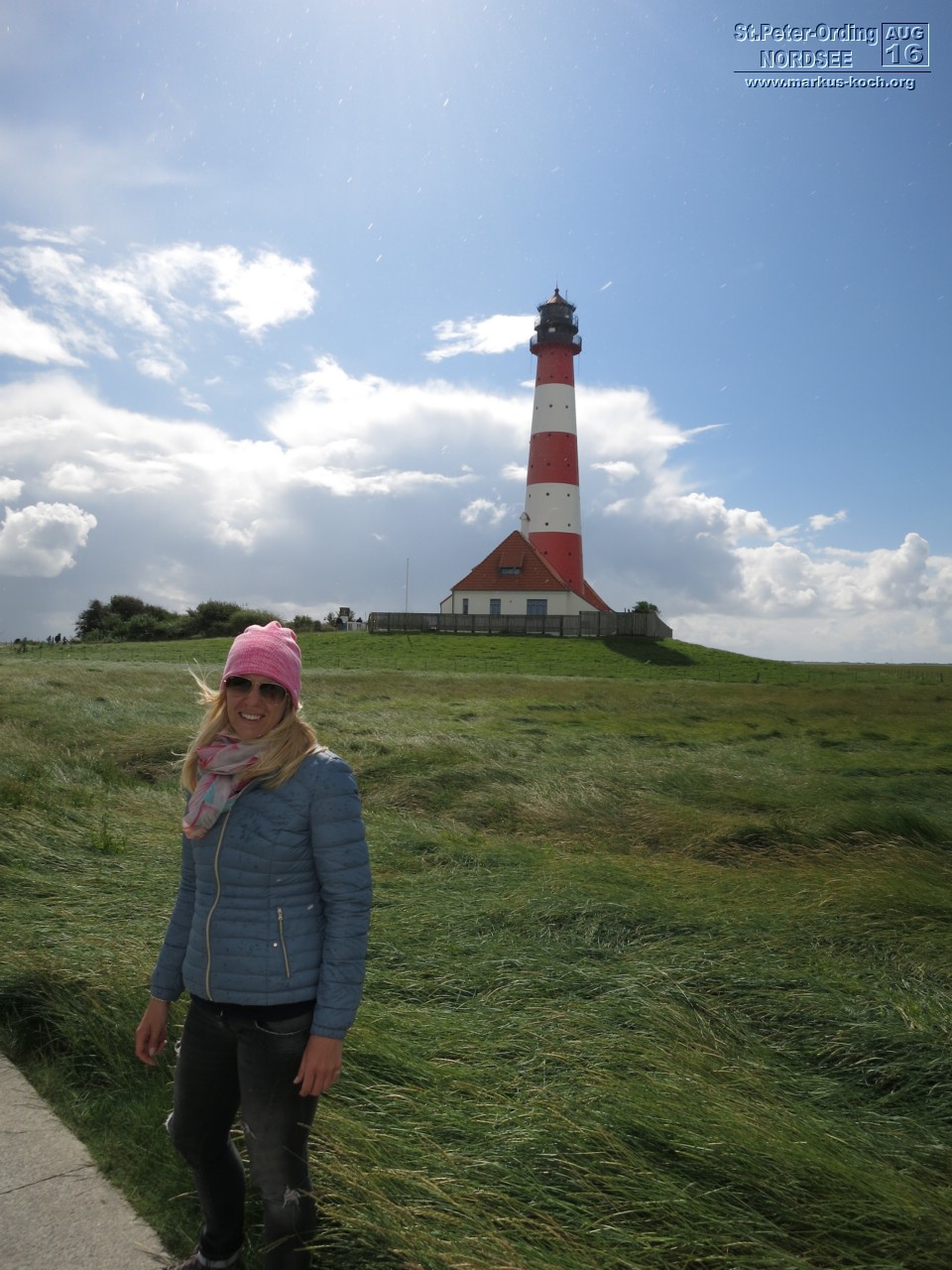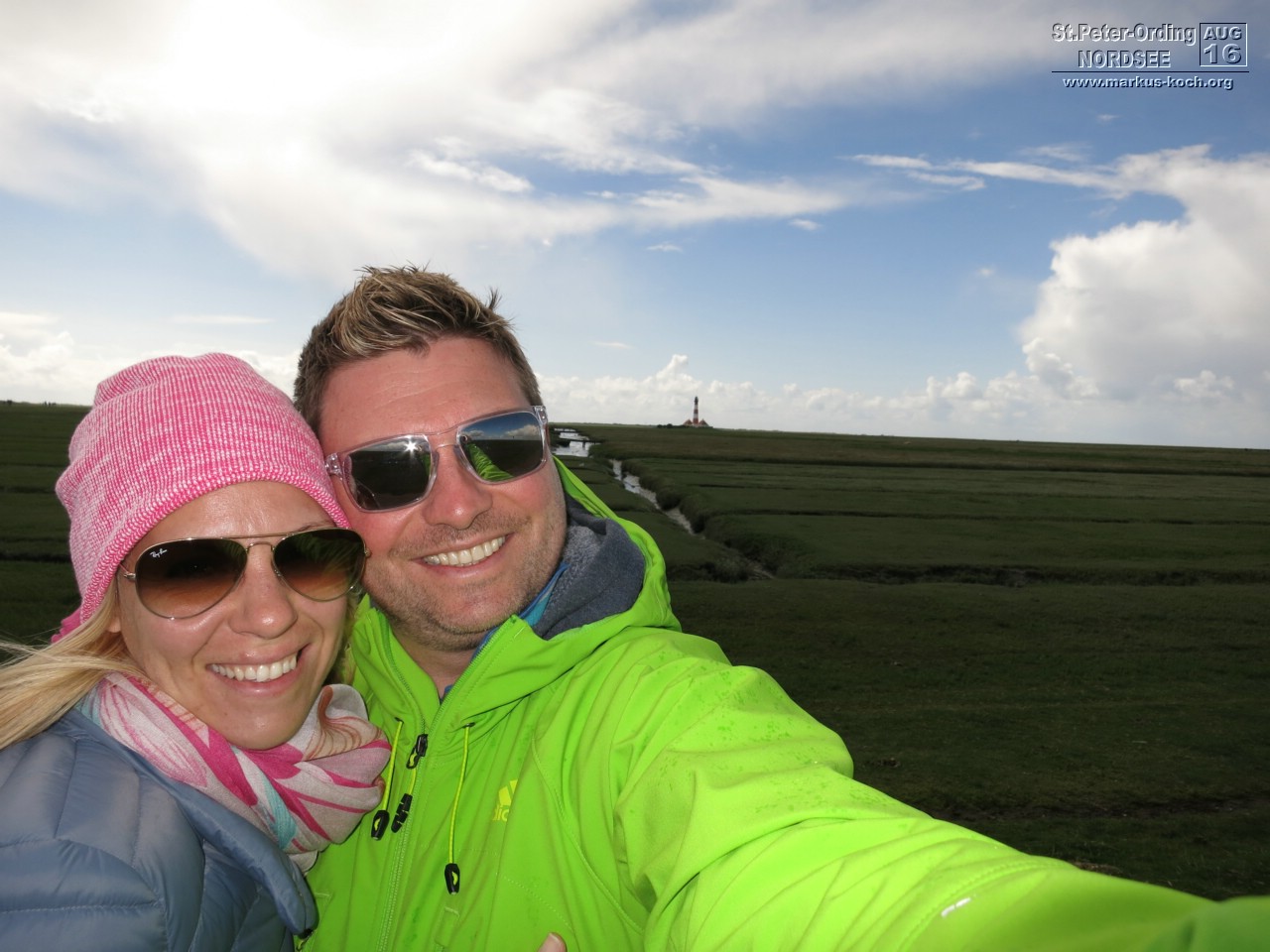 Das Wetter war nicht gut gemeldet, weswegen wir uns schon in die lange Reihe an der Dünen-Therme anstellten. Nach ein paar Überlegungen beschlossen wir jedoch das Risiko einzugehen um lieber am Mi den bekannten Leuchtturm von Westerhever zu besuchen. Nach 2 km und Glück mit dem Wetter erreichten wir diesen auch zu Fuß.