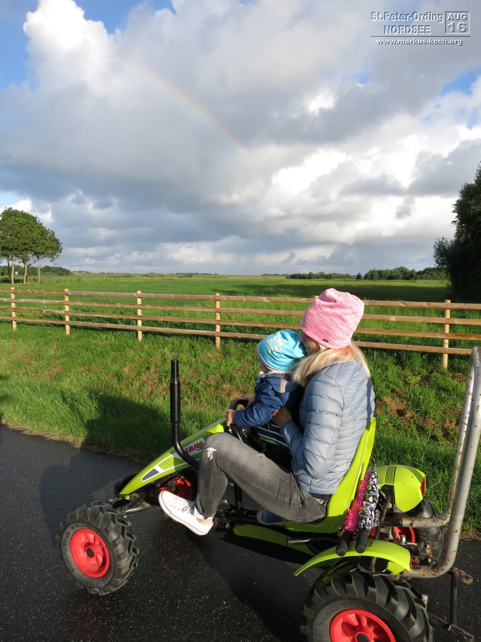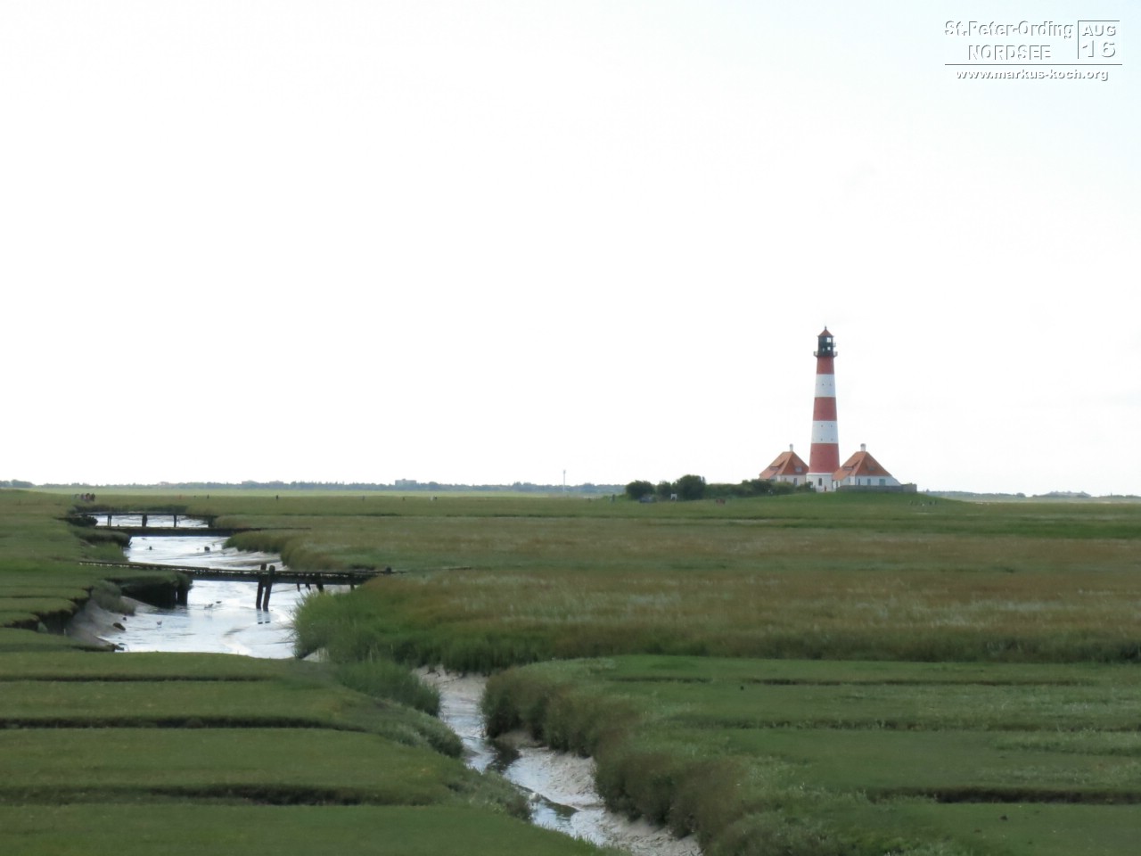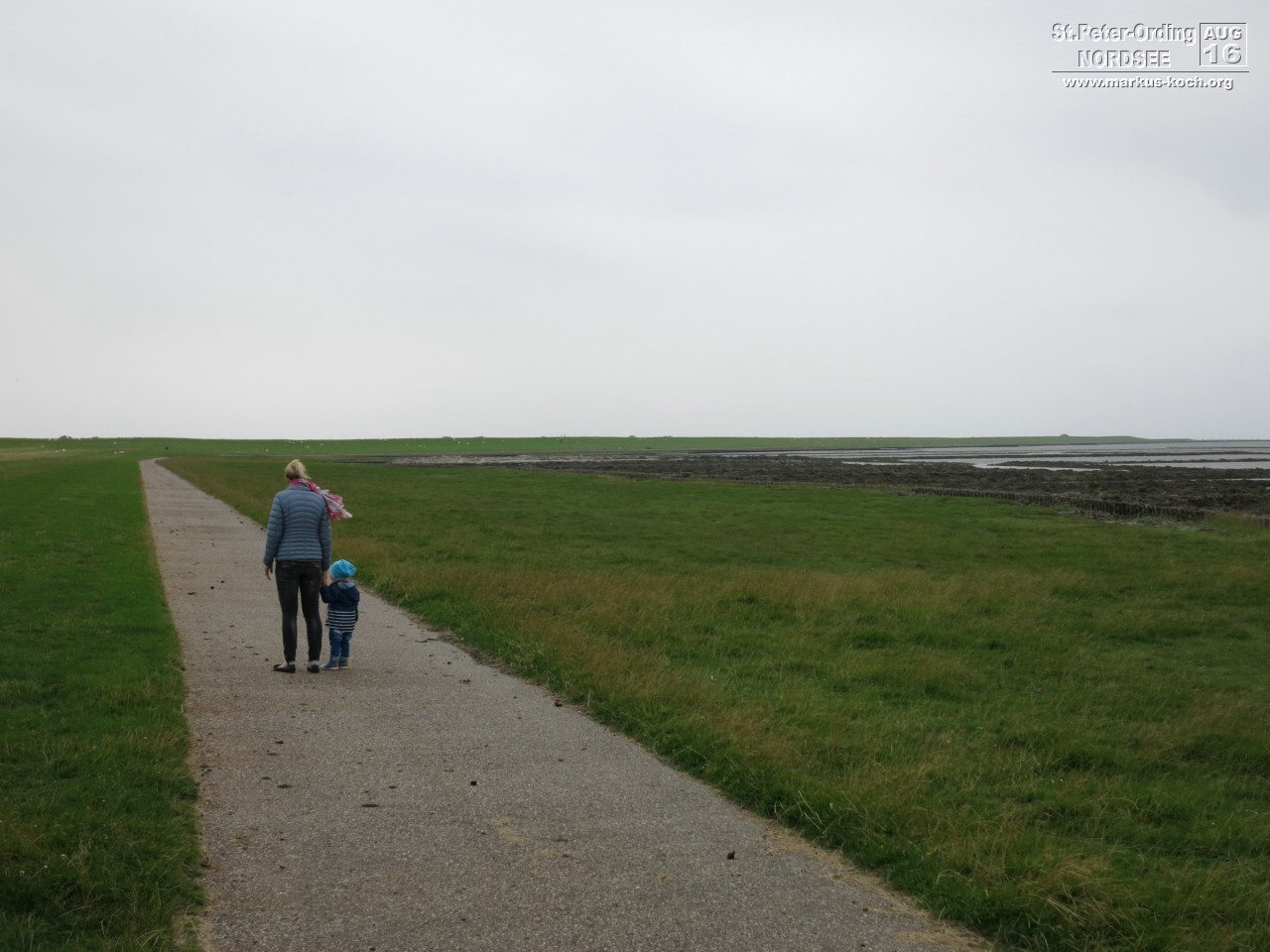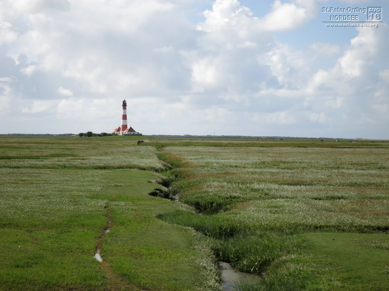 Das Wetter war nicht gut gemeldet, weswegen wir uns schon in die lange Reihe an der Dünen-Therme anstellten. Nach ein paar Überlegungen beschlossen wir jedoch das Risiko einzugehen um lieber am Mi den bekannten Leuchtturm von Westerhever zu besuchen. Nach 2 km und Glück mit dem Wetter erreichten wir diesen auch zu Fuß.