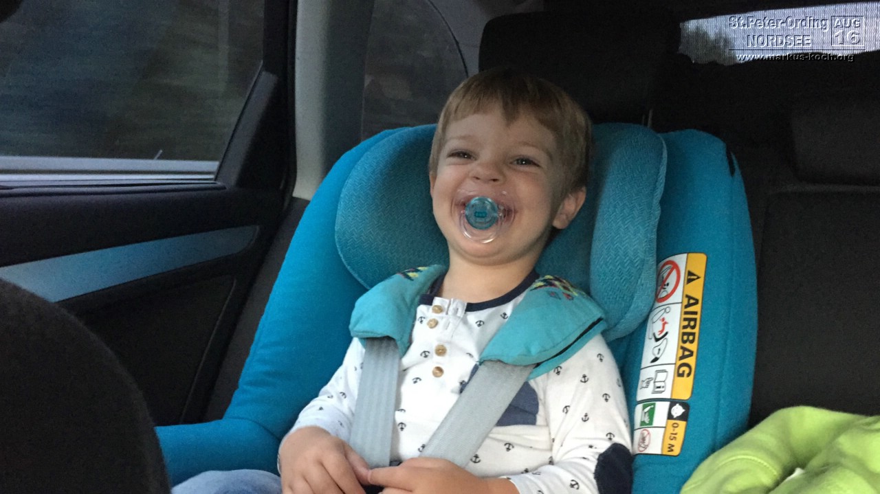 Damit Luca während der Autofahrt schläft, sind wir bereits um 3:30 Uhr losgefahren. Zwar hat es dann doch eine gute Stunde gedauert bis er schlief, wurde aber dann erst kurz vor der Hamburg wieder wach.