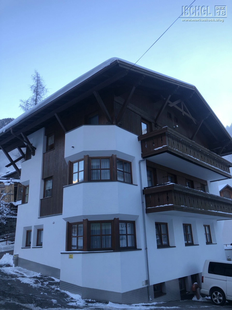 Meine Anreise habe ich ja schon im Blog unten drunter erzählt. Nachdem ich mit dem Bus in Ischgl ankam lief ich ca. 500 m mit dem ganzen Gepäck bis zu unserem Appartement Apart Furcletta mitten in Ischgl. Das Apt. war sehr gut gelegen. Das einzige was ich zu bemängeln habe, dass kein Fön da war. Das nächste Mal ist wieder einer dabei für Apt.-Urlaube 😉
