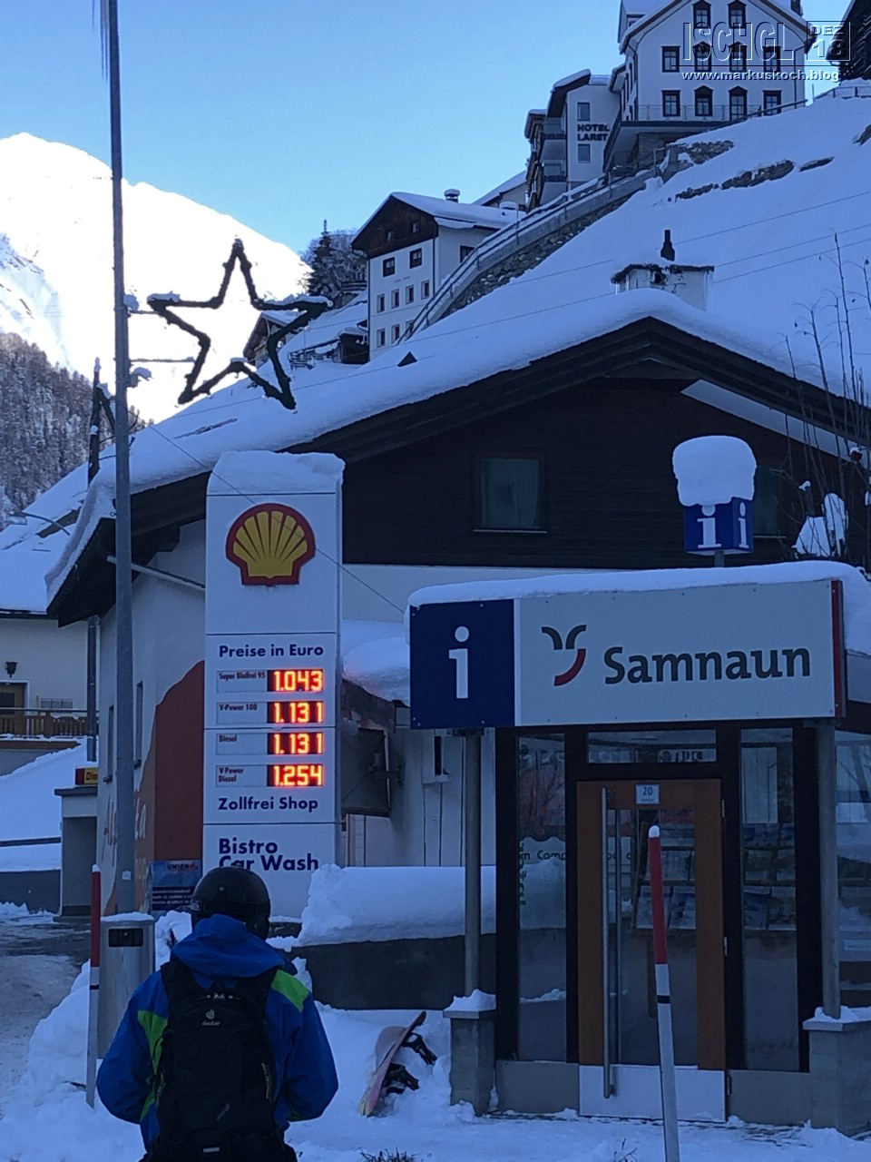 Das Wetter versprach einen weiteren Tag feinstes Skiwetter. Zuerst fuhren wir gleich die Abfahrt hinunter nach Samnaun. Dort war ich noch nie, da es meist zeitlich nicht gereicht hatte. Danach fuhren wir den ganzen Tag Ski und tranken noch etwas bei der Paznauer Taja.