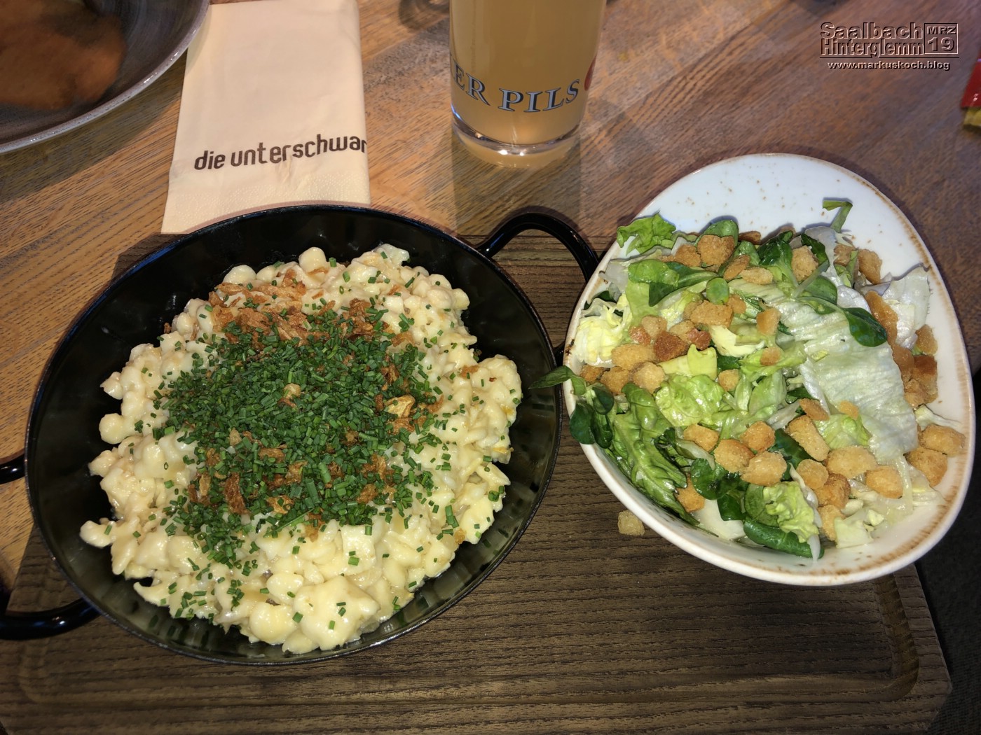 So verbrachten wir den Tag teils im Appartement. Teils waren Marie & Elternteile in Saalbach etwas bummeln. Abends dann essen gehen in einem schönen Kellerrestaurant.