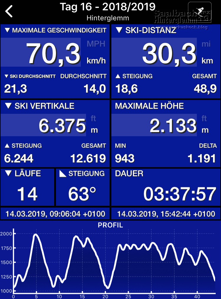 Sa, 16.03. – Saalbach-Hinterglemm – Wetter: leicht bewölkt, sonnig, ca. 0 bis +8°C