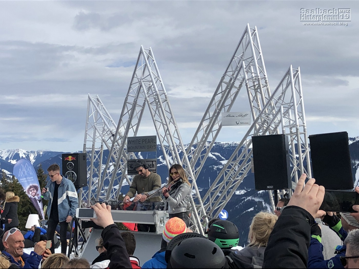Wir trafen uns dann alle auf der Wieser-Alm zum Mittag (weltbester Kaiserschmarren). Danach ging es mit den Ski weiter zu Luis-Alm. Dort waren DJs & Co von den White Pearl Mountain Days. Zufällig trafen wir dort Christian Leimeister & Oliver Leister, die spontan an dem Wochenende auch in Zell am See waren.