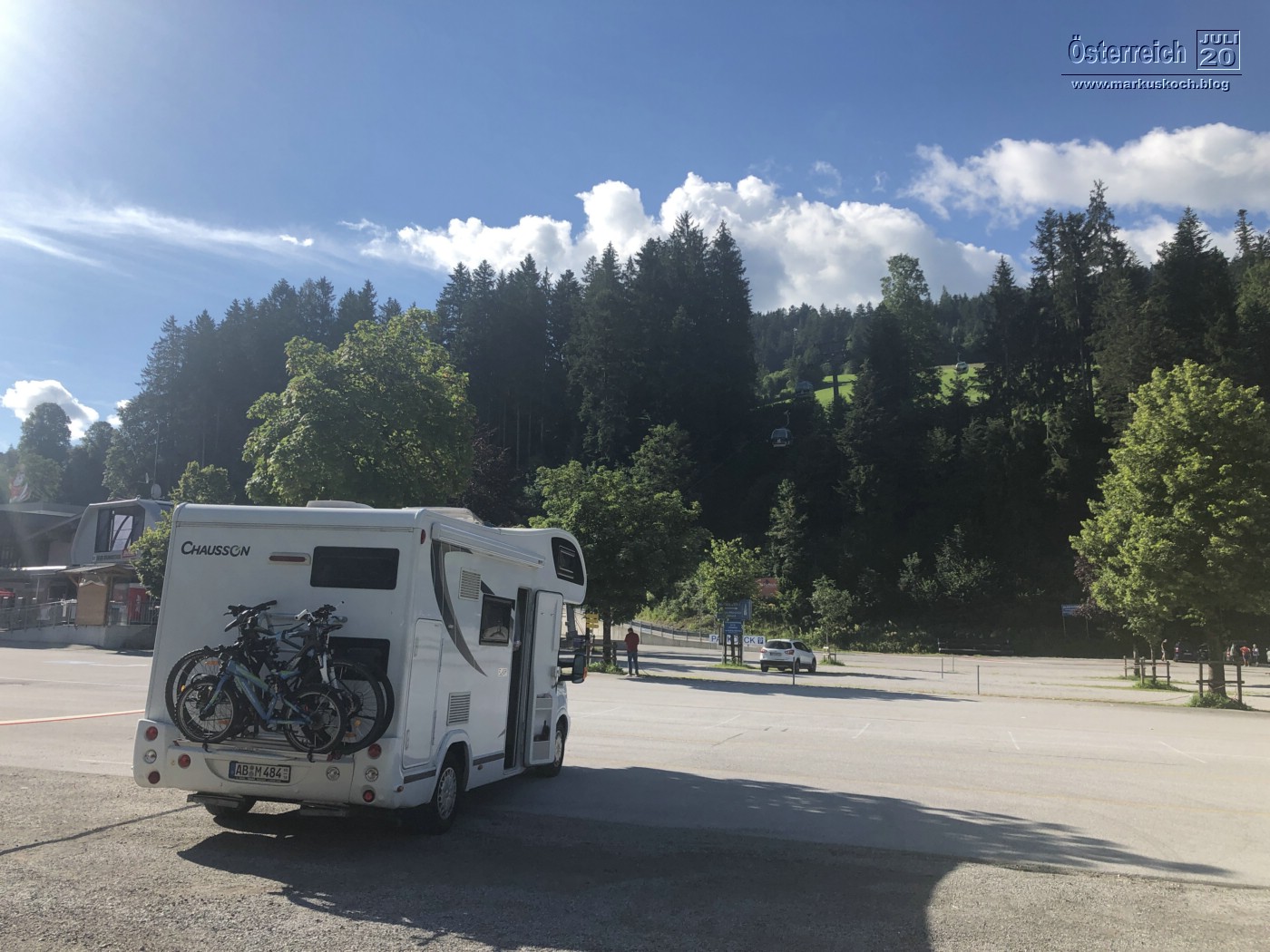 Unser erstes WoMo Frühstück machten wir direkt an der Gondel der Scheffau Seilbahn am Wilden Kaiser. Diese war grad 30 Min. vom CG (Campingplatz) entfernt.