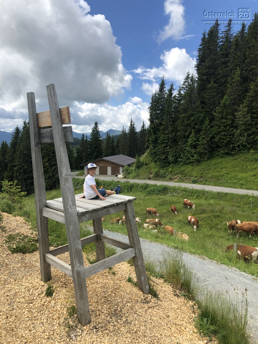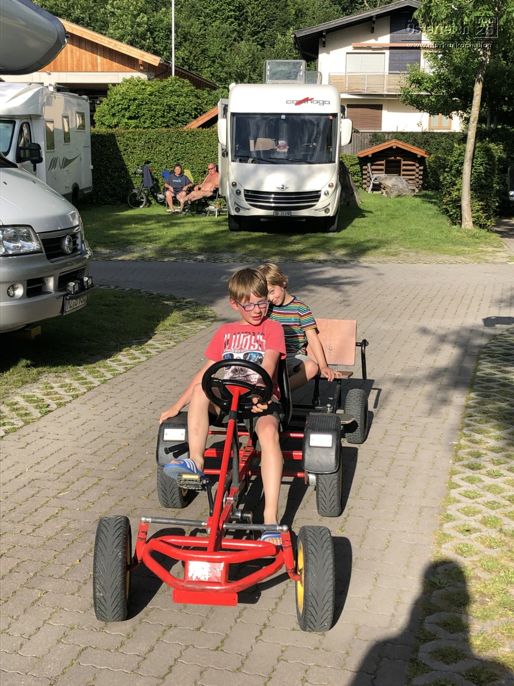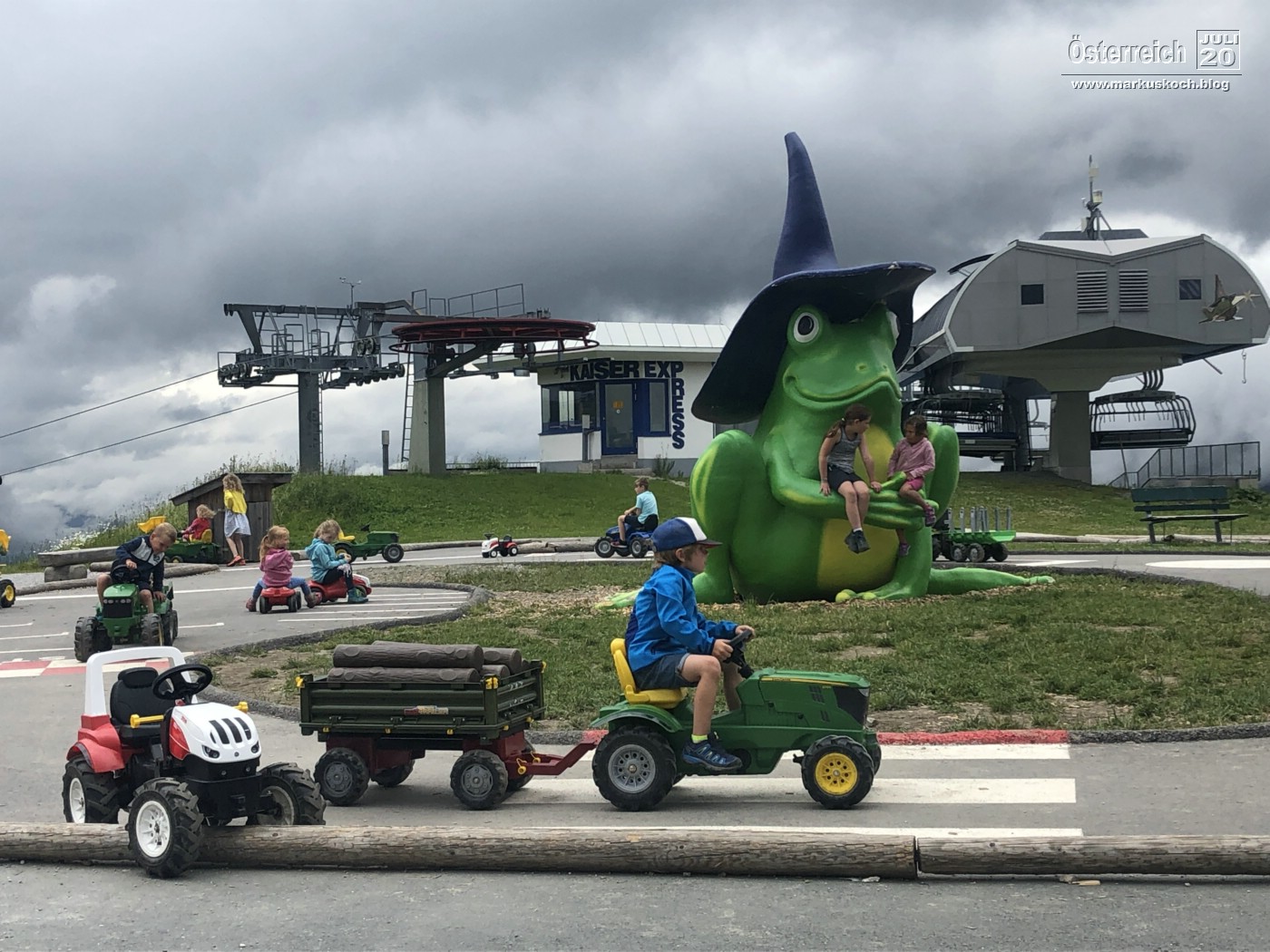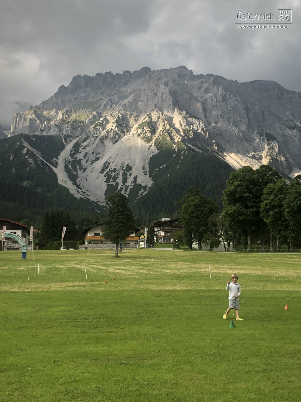 Zunächst spielten wir mit Blick auf den Wilden Kaiser an der Erlebniswelt Scheffau, dann wanderten wir zur Zauberwelt Ellmau (ca. 1 h) wo wir bis zum einsetzenden Regen die Zeit verbrachten. Mit dem Bus ging es dann zurück zum WoMo nach Scheffau und dann zurück zum Thiersee an den CG.