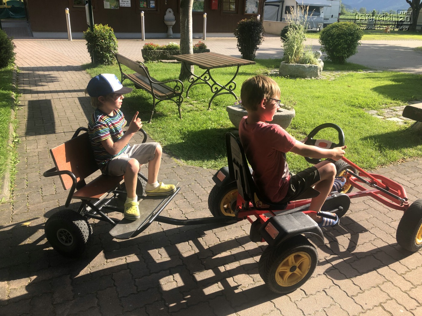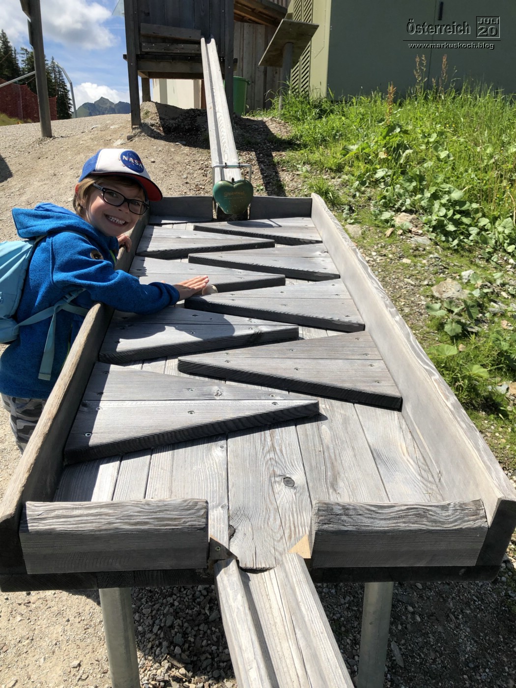 Entspannt starteten wir bei herrlichem Wetter mit den Fahrrädern zum Maiskogl. Dort wollten wir zunächst nur den Maisiflitzer (Sommerrodelbahn) fahren. War echt super!