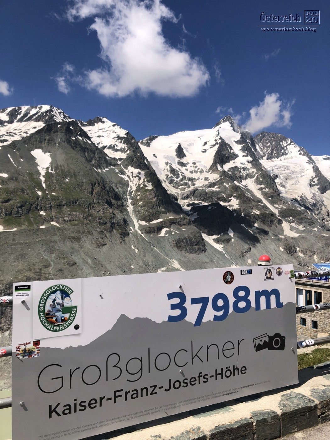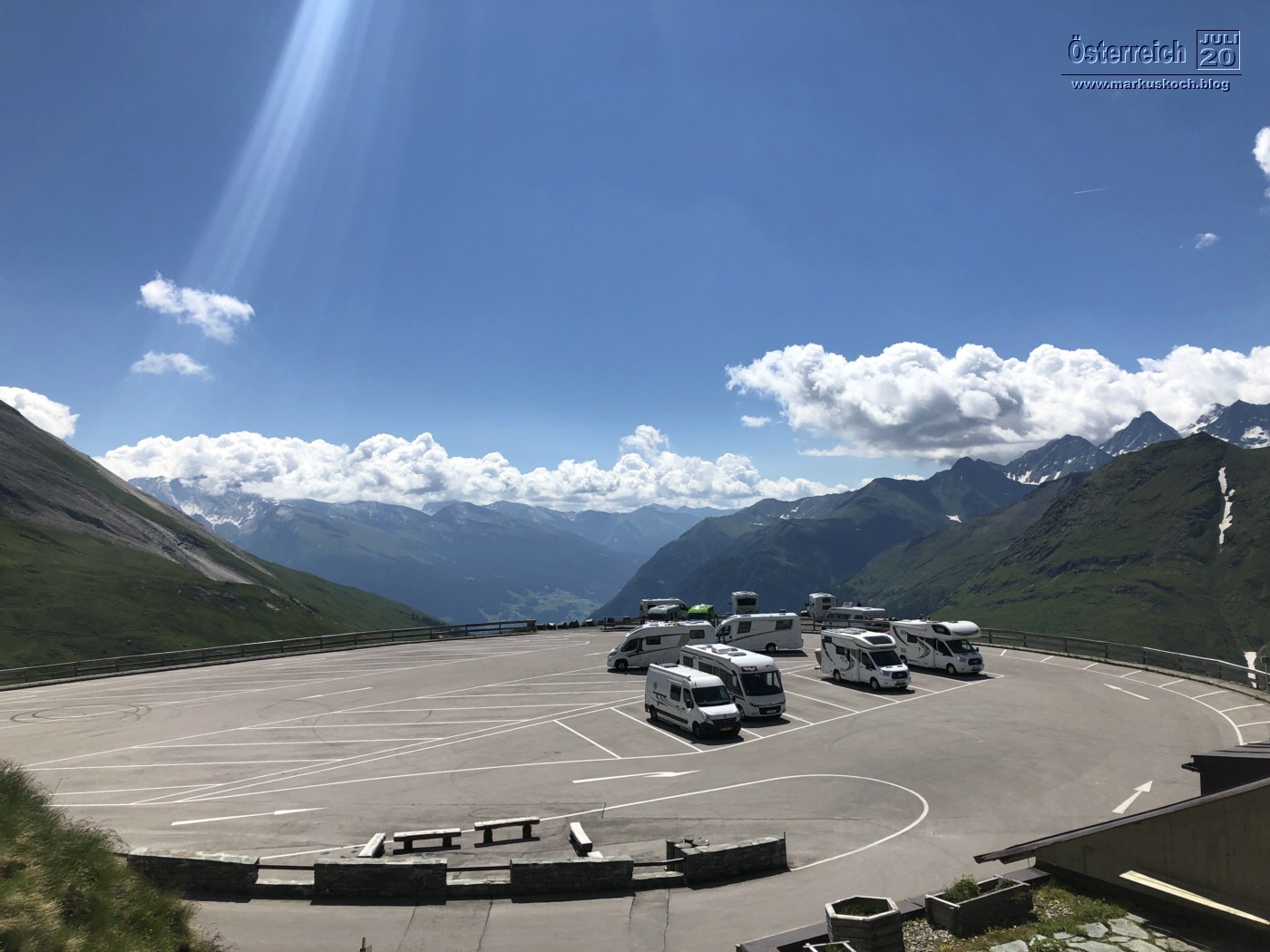 Heute ging es hoch hinauf…. Bis auf 2.500 hm mit dem WoMo bis zur Kaiser-Franz-Josefs-Höhe mit sensationellem Blick auf den Großglockner, Österreichs höchsten Gipfel mit 3.798 m.
