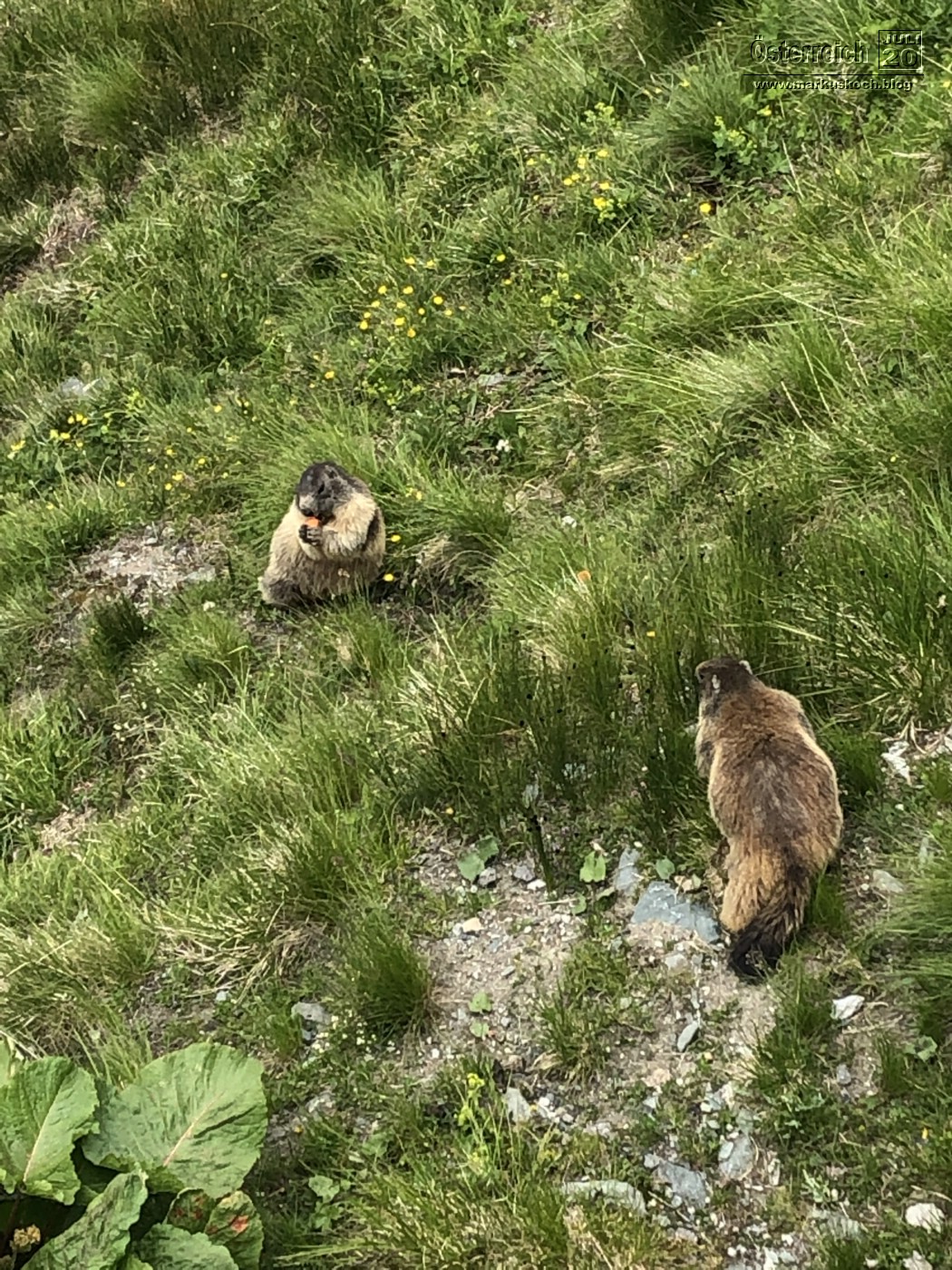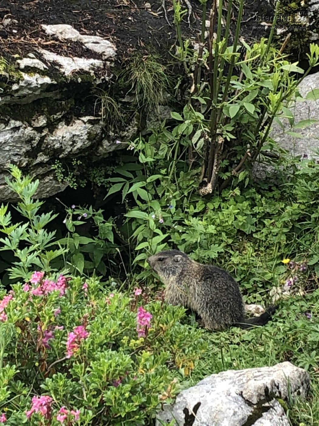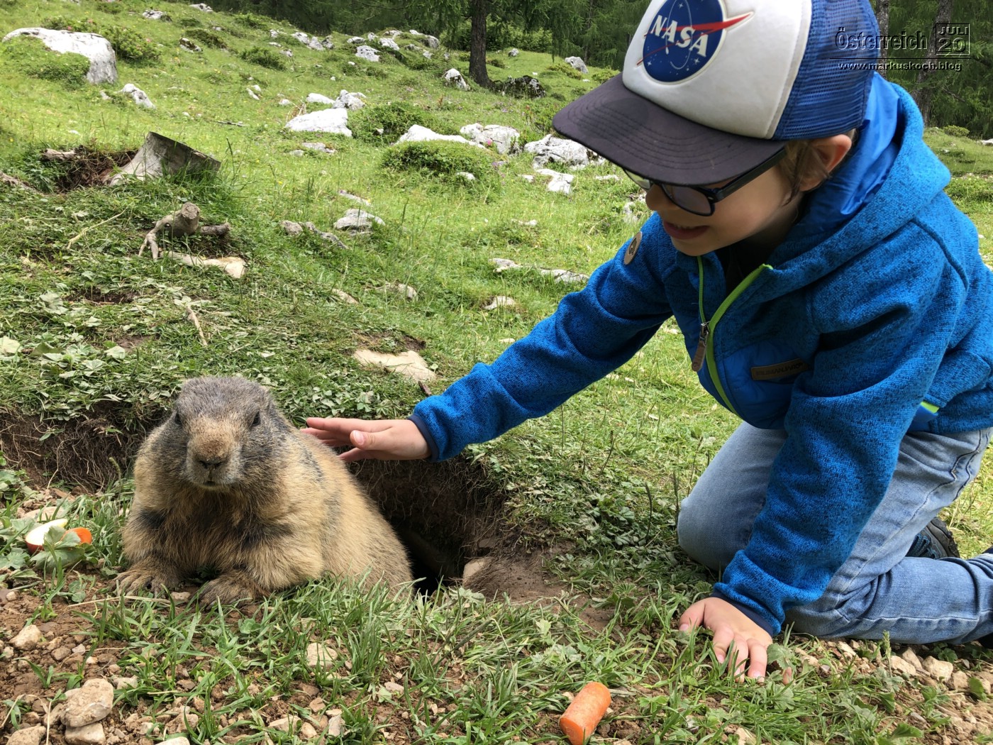 Ein paar Kilometer entfernt war der Wanderparkplatz zur Bachlalm hinauf. Dort konnte man viele zahme Murmeltiere bestaunen und füttern. Es war total süß mit diesen Tieren. Sogar Kleine waren zutraulich.