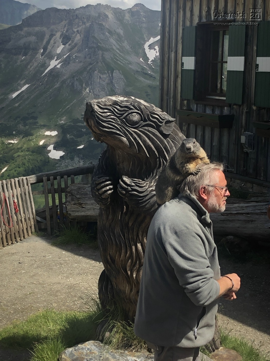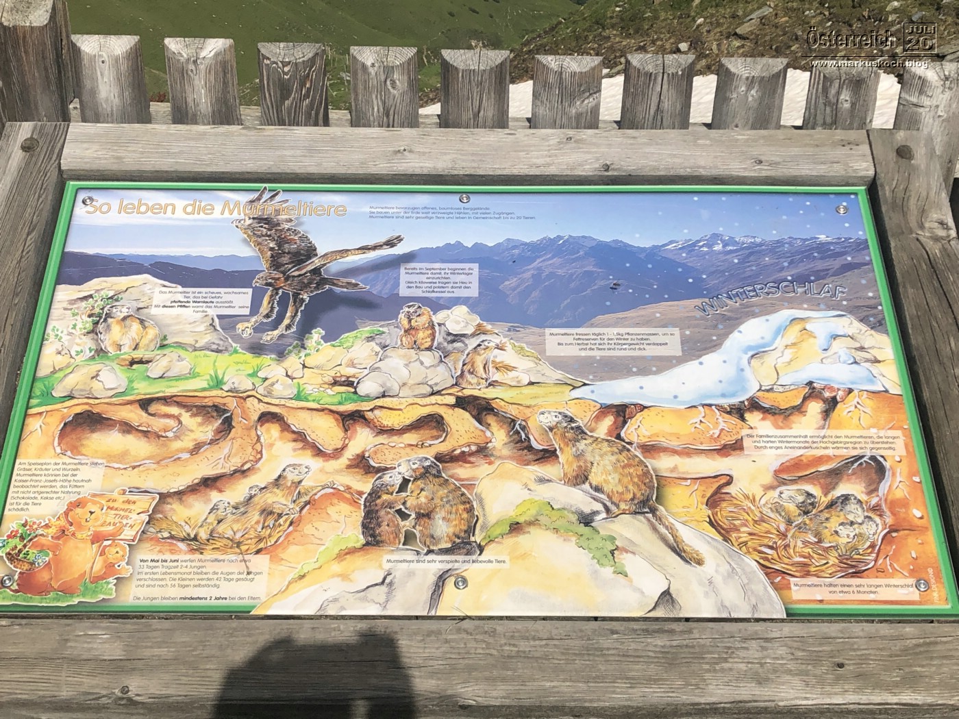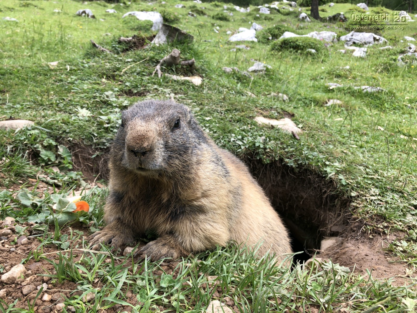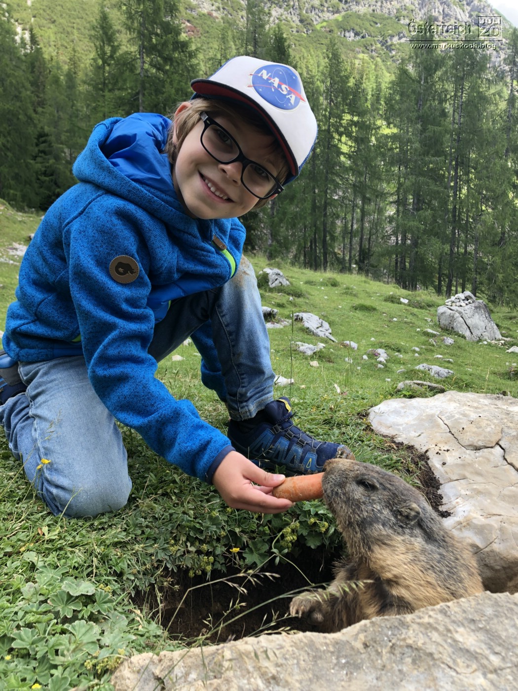 Ein paar Kilometer entfernt war der Wanderparkplatz zur Bachlalm hinauf. Dort konnte man viele zahme Murmeltiere bestaunen und füttern. Es war total süß mit diesen Tieren. Sogar Kleine waren zutraulich.
