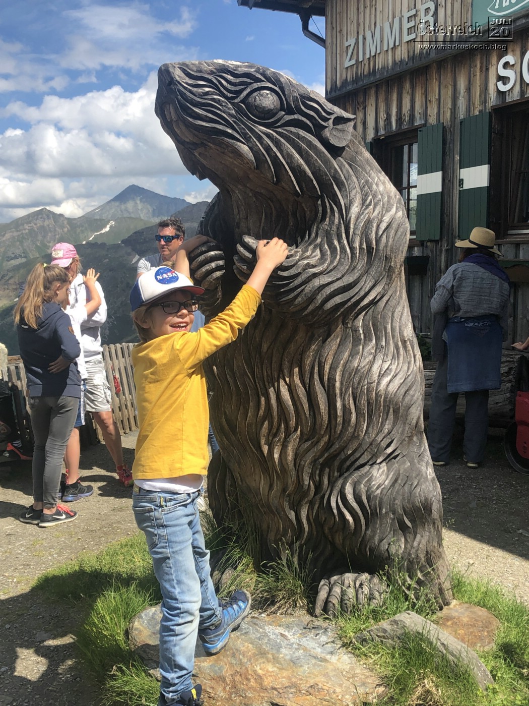Auf dem Rückweg machten wir beim Mankeiwirt, der Wirt der Murmeltiere, an der Fuscher Lacke halt. Dort war für Luca ein super Spielplatz. Zwischendurch zeigte uns der Wirt das Murmeltier Muttertier mit den zwei kleinen Geschwistern. Super süß!
