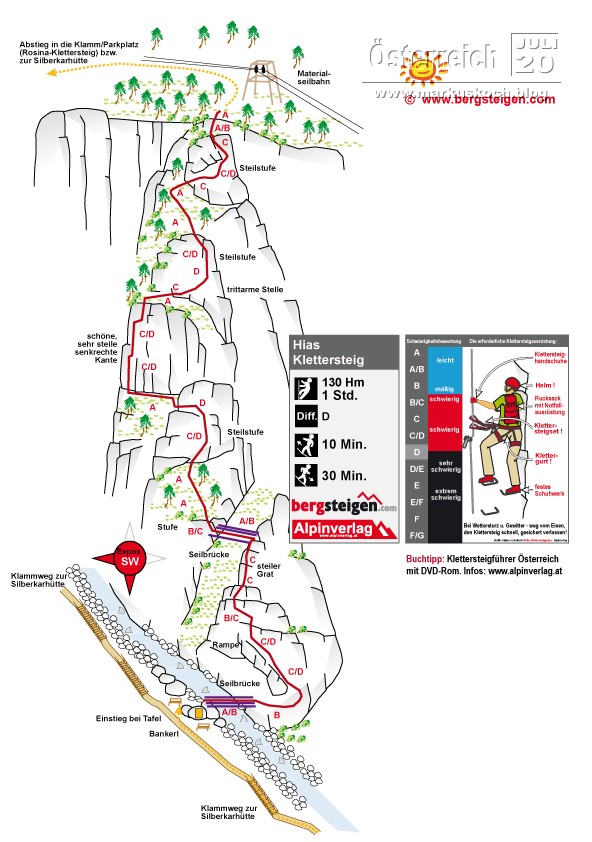 Ich machte hingegen in der Silberkarklamm zwei Klettersteige, HIAS und SIEGA. Mit D und C/D war es ein doch eher schwieriger kraftraubender Tag, da auch noch die Sonne ganz schön herunter brutzelte.