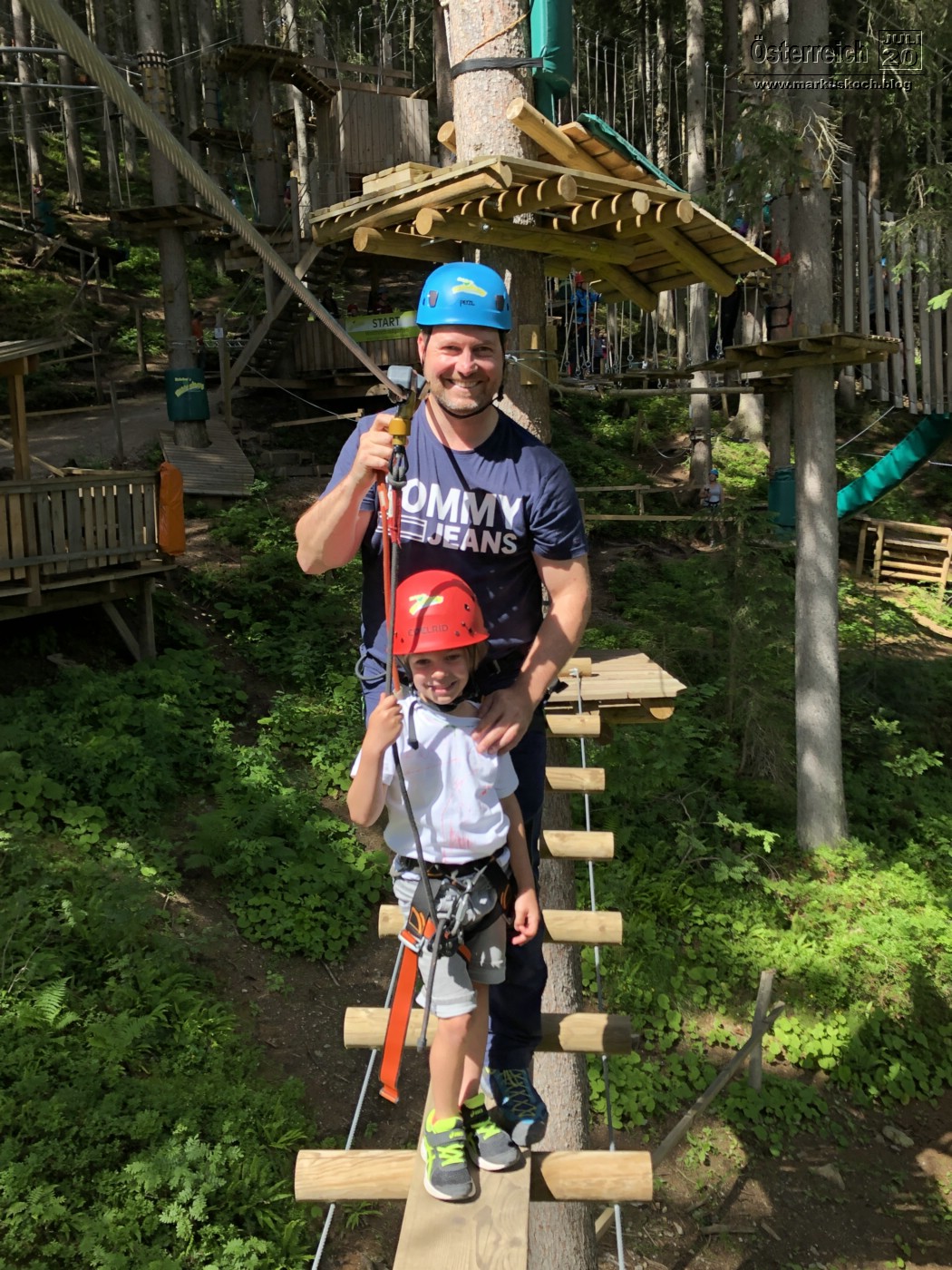 Neben dem Alpine Coaster am Rittisberg und dem Naturbadesee direkt am Campingplatz war auch ein Kletterwald. Luca hatte riesigen Spaß an den Routen 1-4, welche für ihn geeignet waren. Teils gleich sogar zweimal 🙂