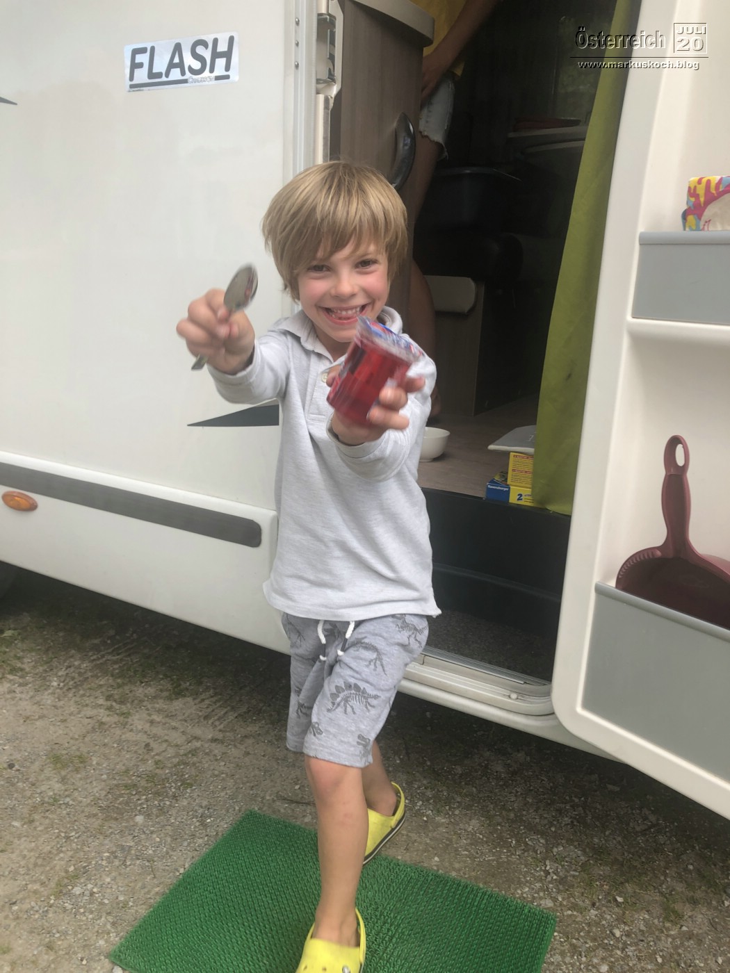 Heute am späten Nachmittag kommt Marie aus Verona zurück nach Zell am See. Bis dahin vertrieben Luca & ich die Zeit am CG im/am Naturbadesee.