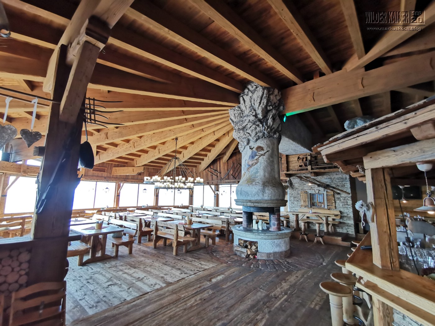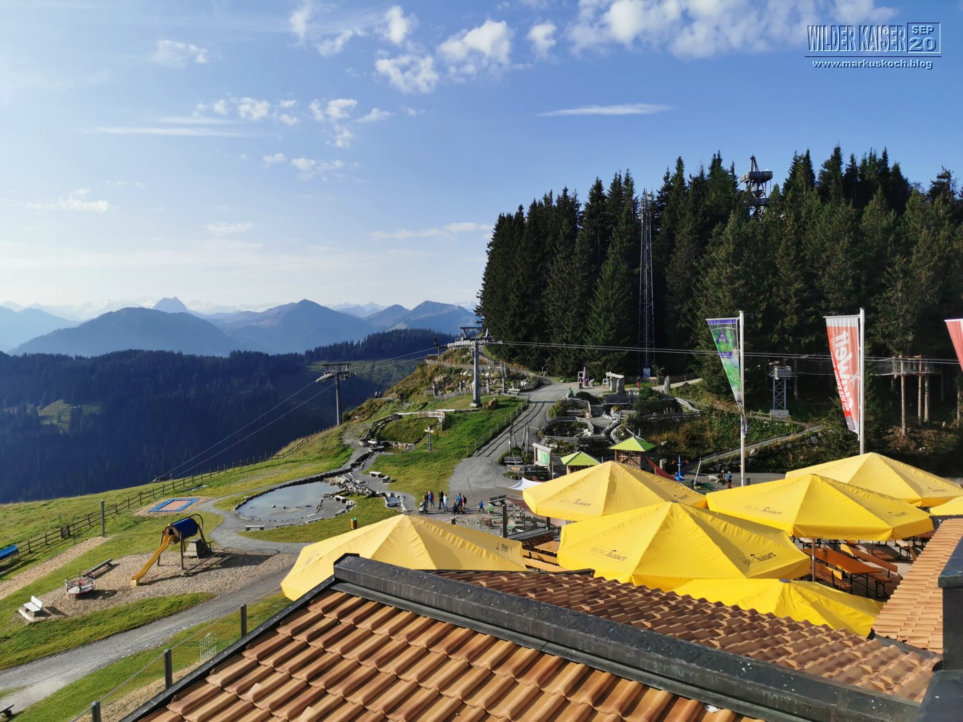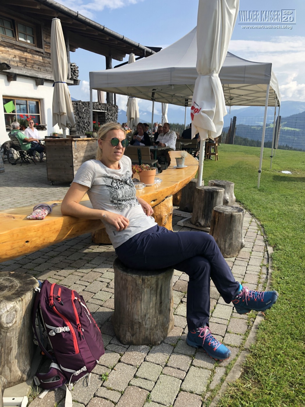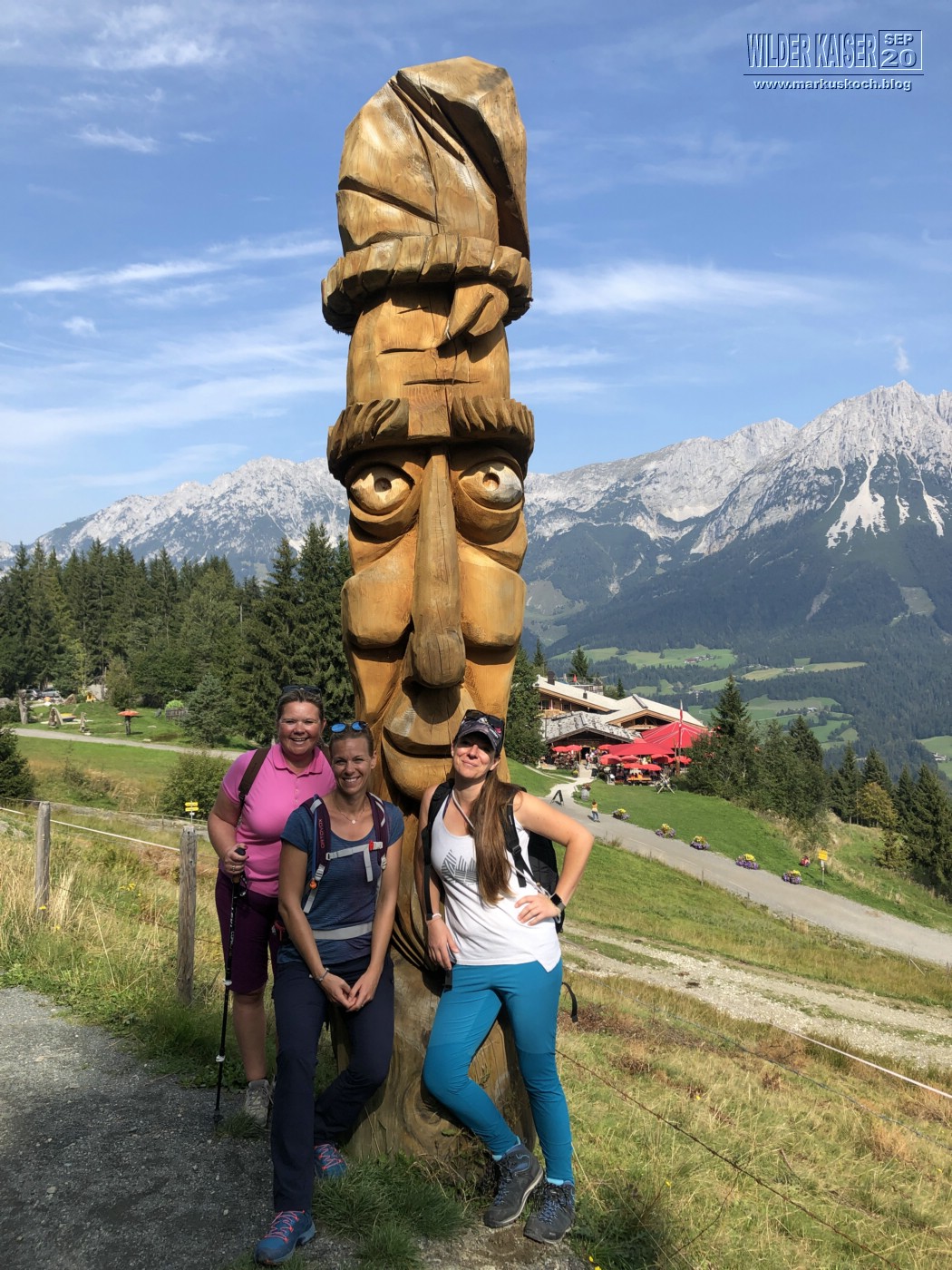 Da wieder so tolles Wetter gemeldet war, zog es Marie, Feli & mich wandernd zum Frühstücken, wo dann der Rest der Crew (Chris & Chrissi reisten am So schon ab) gondelte, auf den Hartkaiser wieder zur Kaiser Lounge hinauf. Runter ging es dann mit Zwischenstopp auf der Rübezahl Alm auch mit Kirstin zu Fuß.