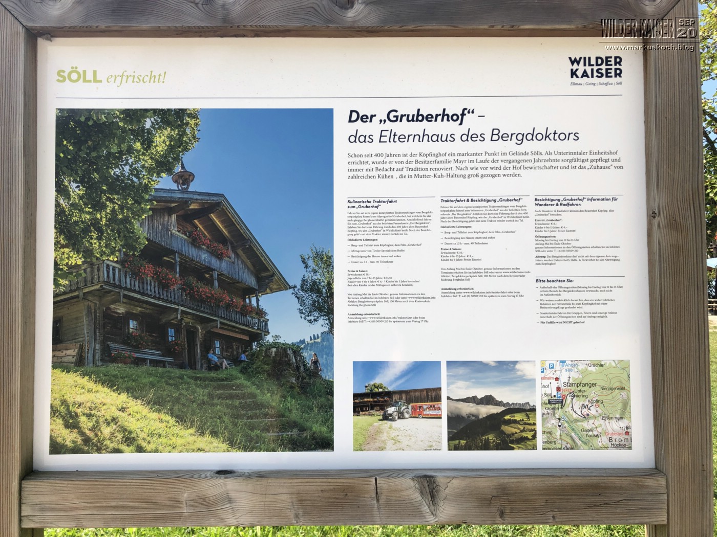 Anschließend ging die Wanderung zusammen vom Hartkaiser über den Bergstadl nach Söll zum Bergdoktor Wohnsitz „Gruberhof“, wo wir auch gegen Eintritt (8€) mal reinschauen durften.