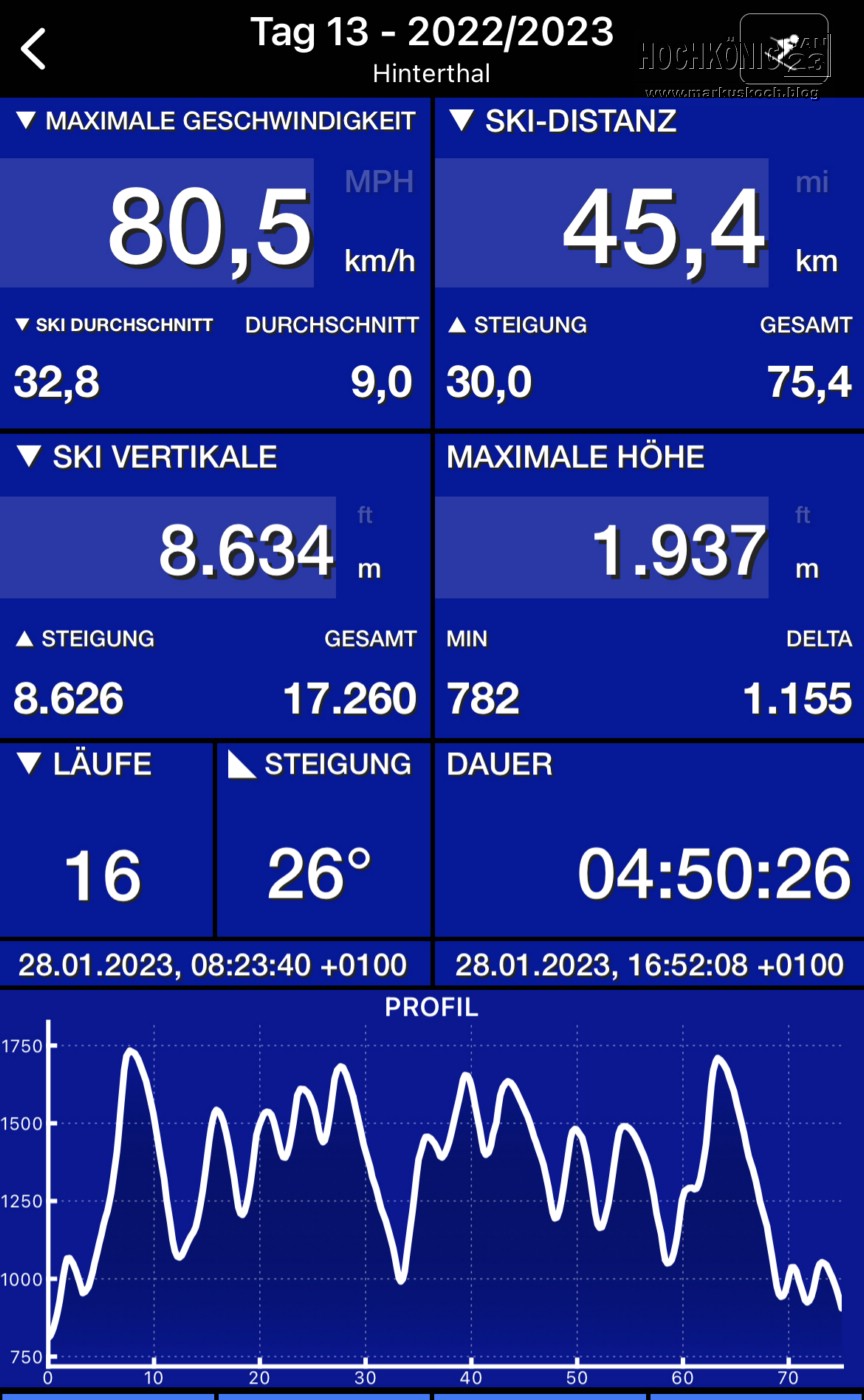 Fr, 27.01. – Skiing – Wetter: bewölkt/leicht bewölkt, -5°C bis -13°C