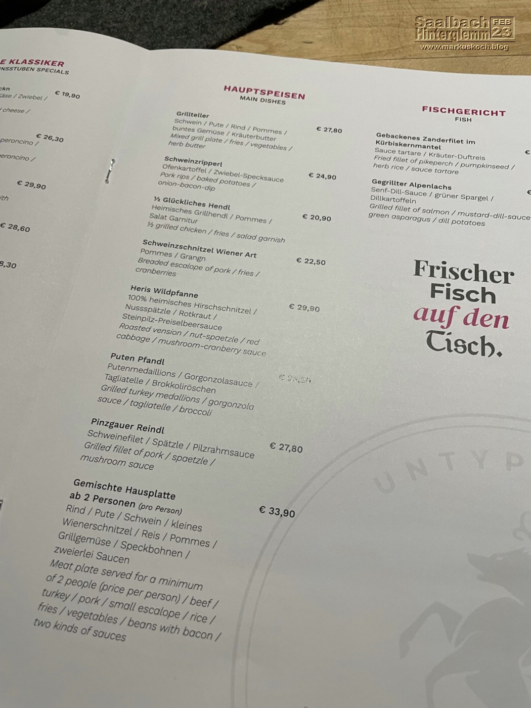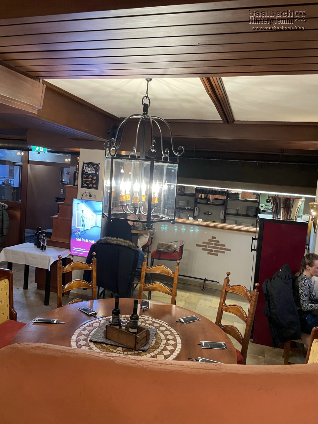 Nach dem Skifahren fuhren wir zur Unterkunft Pension Blasius in Hinterglemm. Nach Dusche & auspacken waren wir in der Fuhrmannstube Abendessen.