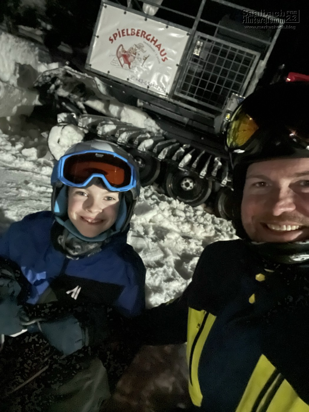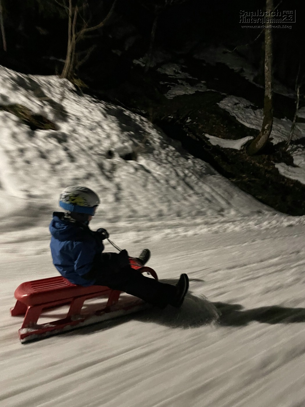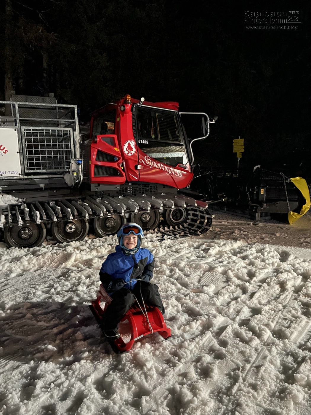 Am Abend fuhren wir mit der Pistenraube, wie schonmal, zum Spielberghaus auf und nach einem leckerem Schnitzel mit dem Rodel nach unten. Luca war das erste Mal alleine auf einem Rodel unterwegs. Hat ihm super gefallen.