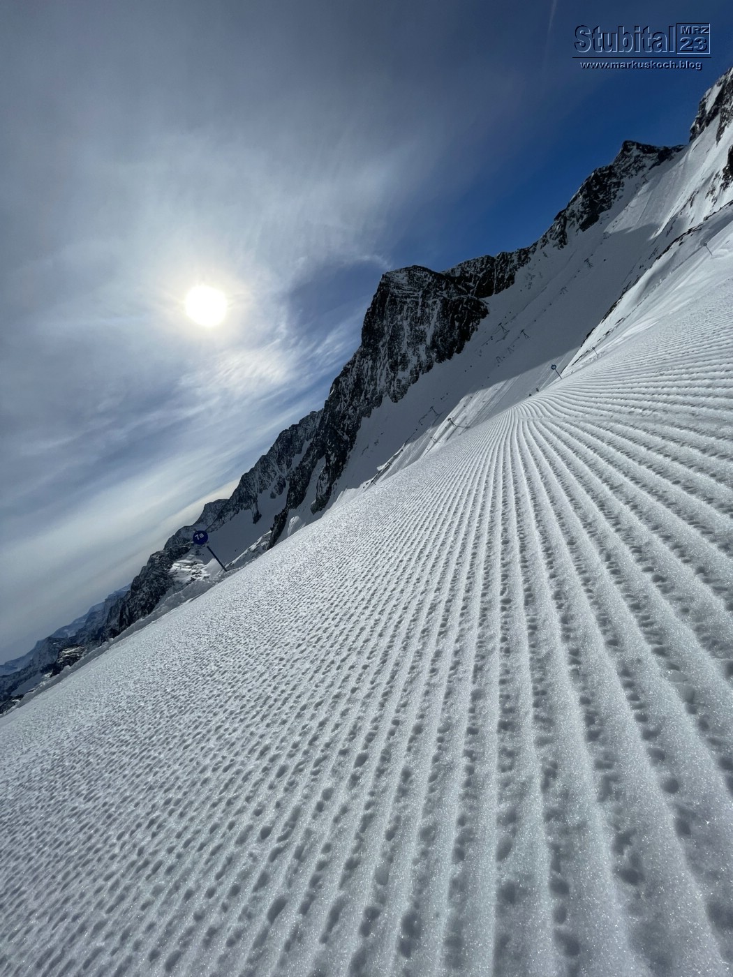 Der Schnee war nach etwas Neuschnee recht gut für diese warme Saison. Und die Pistenvielfalt am Gletscher auch noch 1A.