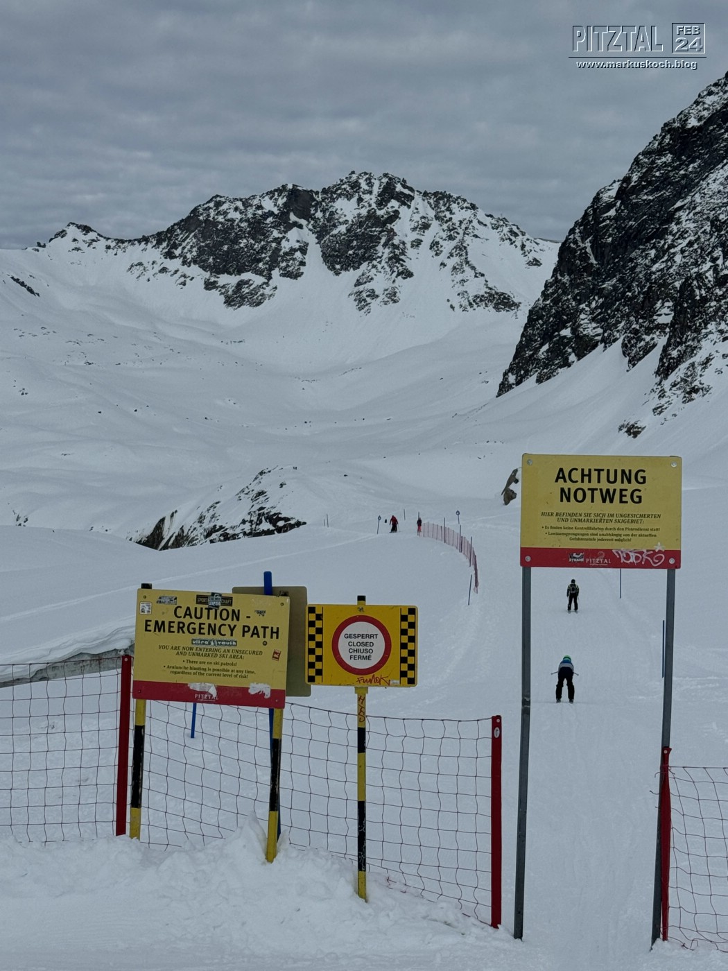 Talabfahrt gibt es offiziell nicht, aber eine Behelfsabfahrt, die am FR bei Sicht auch gut zu fahren ging. Dennoch lag eine Mini Lawine über diese Strecke, ist also mit Vorsicht zu genießen.