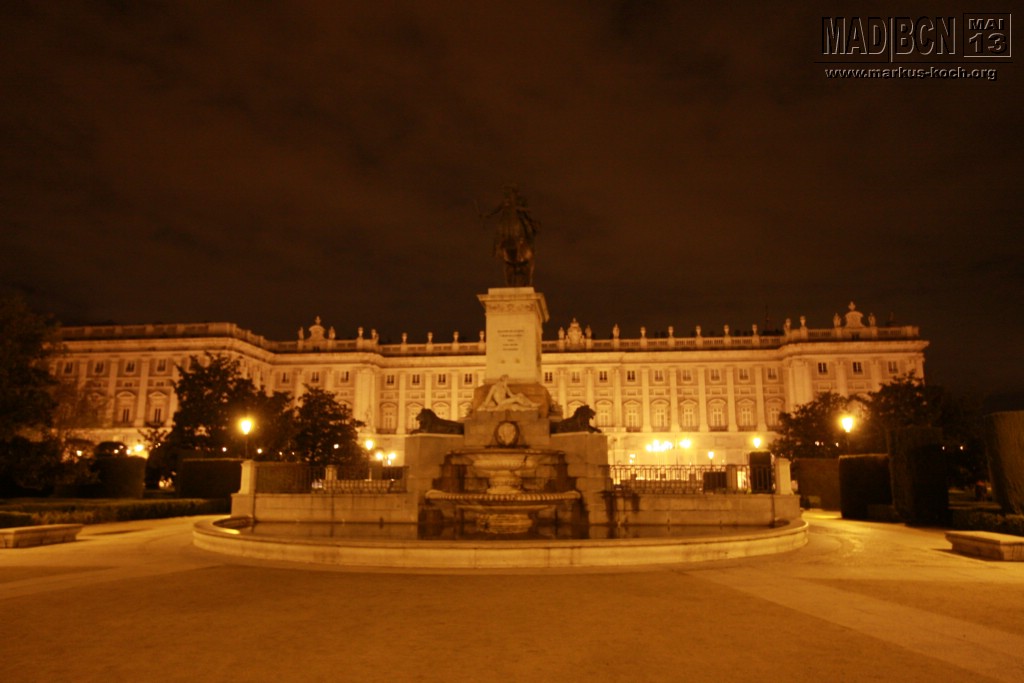 Zurück mit der U-Bahn am Plaza del Sol sind wir nochmal für Sonnenuntergangsbilder vom Palast zum Parque de la Montan.