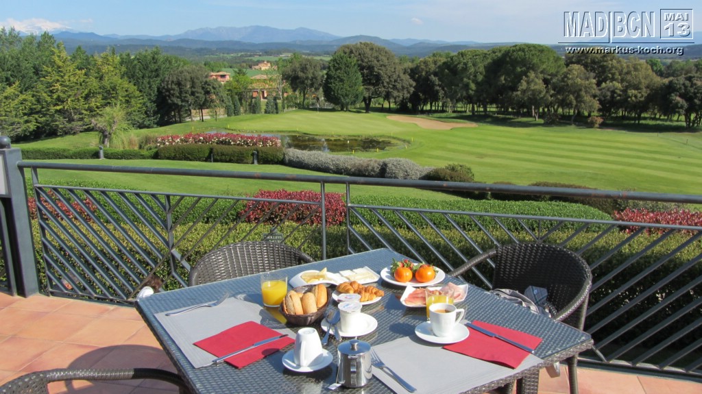 Für die heutige Nacht hatten wir kein Hotel im Voraus gebucht und wollten selbst mal schauen, ob wir ein schönes an der Küste finden würden. Wir fuhren 10-15 km an der Küste von Roses herum, aber leider waren da nur hässliche Betonburgen zu finden oder überteuerte 4 bzw. 5 Sterne Hotels. So entschieden wir uns doch mal über Booking.com ein Hotel zu finden – ein ansprechendes für einen vernünftigen Preis von 60 €/Nacht fürs Zimmer fanden wir in einer Golfanlage von Torreminora. Herrlicher Ausblick, absolute Ruhe, Pool vor der Tür, was will man mehr 🙂