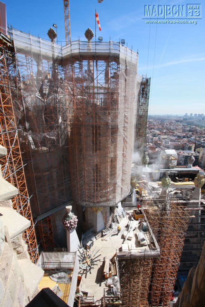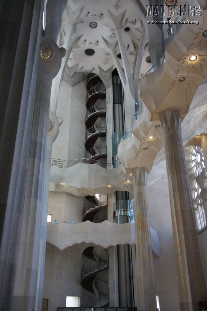 In der Sagrada Familia ist es auch sooo herrlich! Modern, viele Farben, fantastisch! Ein Muss für Barcelona! Ein Besuch auf einem der Westtürme bietet wieder einen Blick auf BCN, aber das sehen wir auch alles von unserer Hotelterrasse aus. Wäre also nicht unbedingt nötig gewesen.