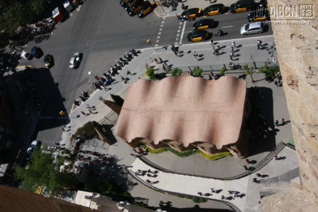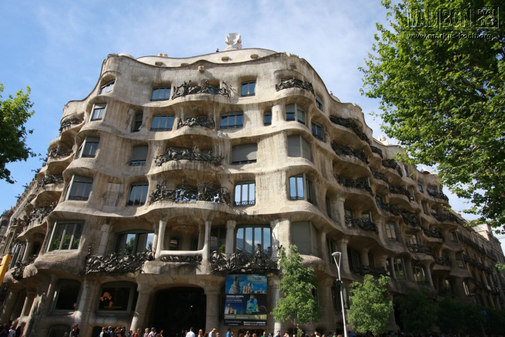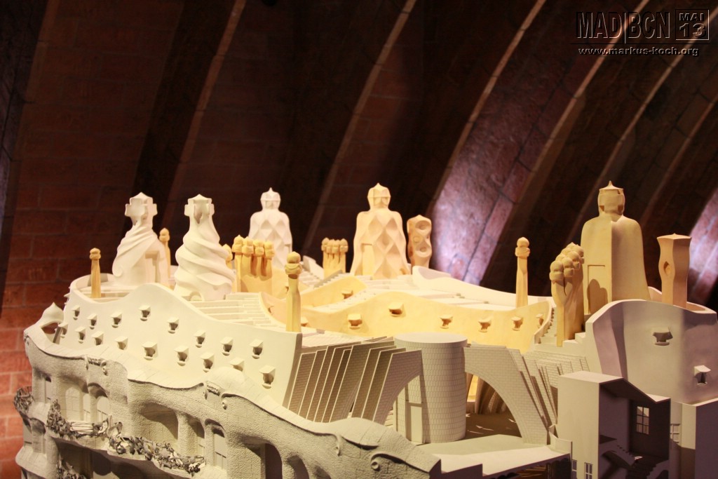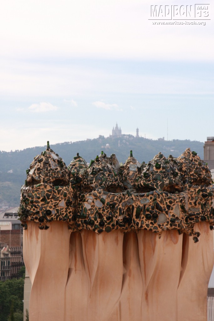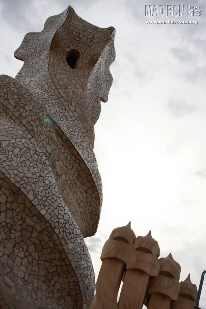 Casa Milá – ein weiteres Meisterwerk eines Wohnhauses von Gaudi. Auf der Dachterrasse installiert er eine Serie der für ihn charakteristischen Kamine und Lüftungsschächte. Ein Stockwerk tiefer eine interessante Wohnung.